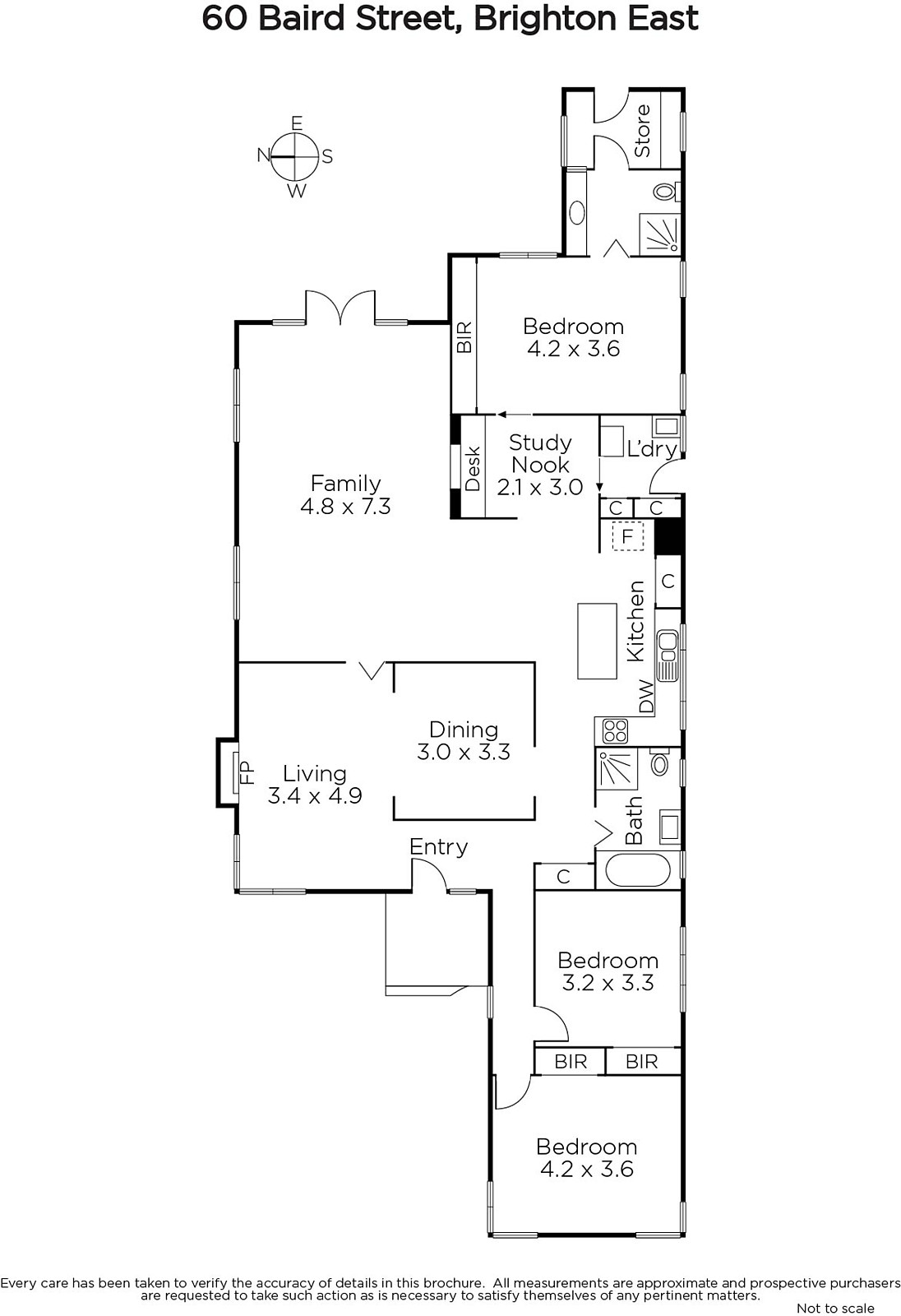Updated and extended single-level home on 696 square metres approx offers spaciousness for today and scope for a fantastic future STCA. Well-kept and perfect for families, this three-bedroom and study home has a generous family room, sun-filled lounge, two dining areas, and an Ilve kitchen with luxury stone surfaces. Extended and updated, the home's main bedroom has garden access, an ensuite and a walk-in wardrobe. There's plenty of off-street parking with a double carport and a gated driveway, water tanks, and a separate studio/home office. Relax outdoors on the deck, appreciate the zoned living spaces and study area with built-in desk, and plan on making the most of this central address. Thriving Brighton East is a prized Bayside location, with an excellent choice of schools, Church Street within easy reach, and plenty of local cafes and shops. Baird Street is a short walk away from St Leonard's College and Haileybury, and Brighton Golf Course and Dendy Park are close by.
