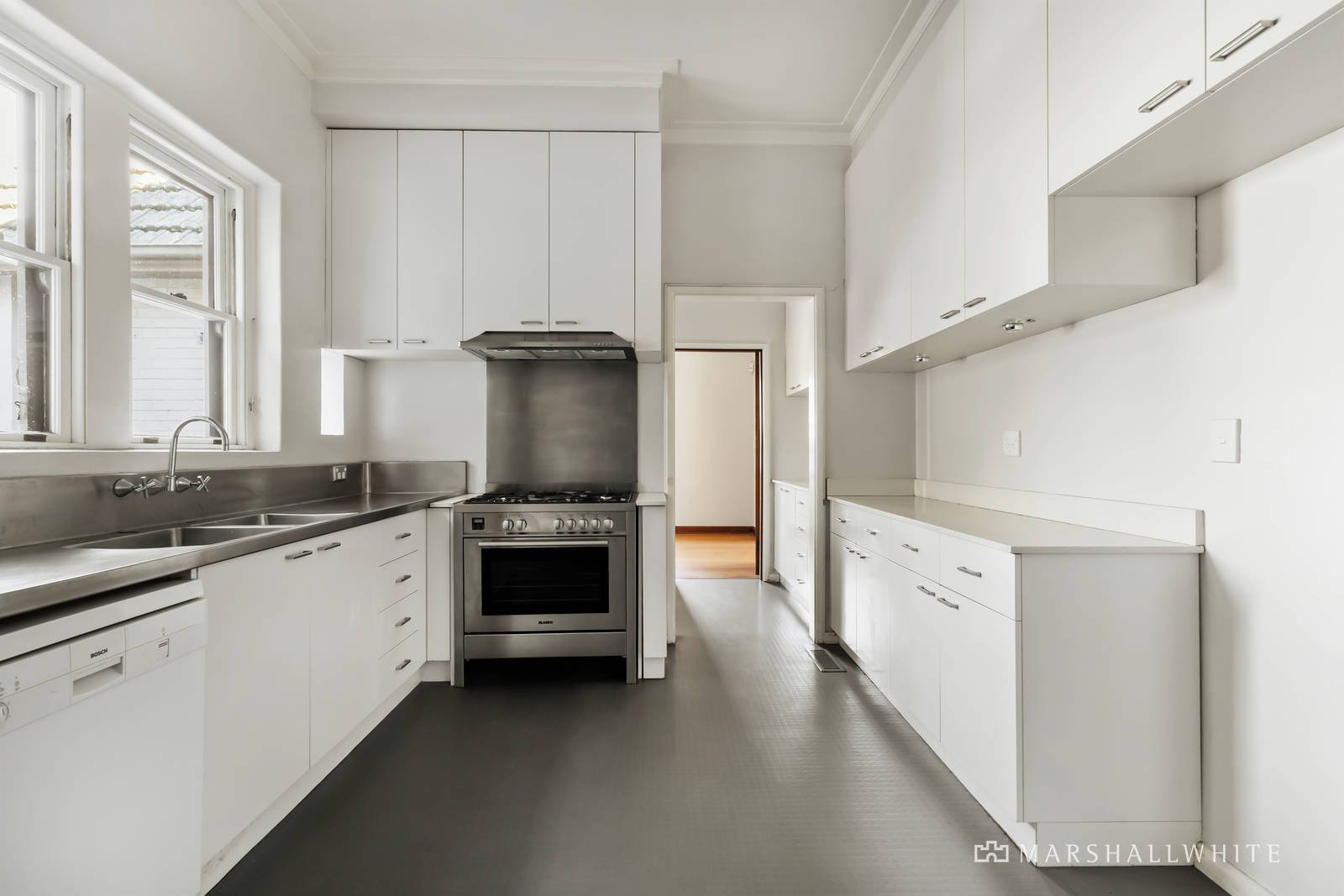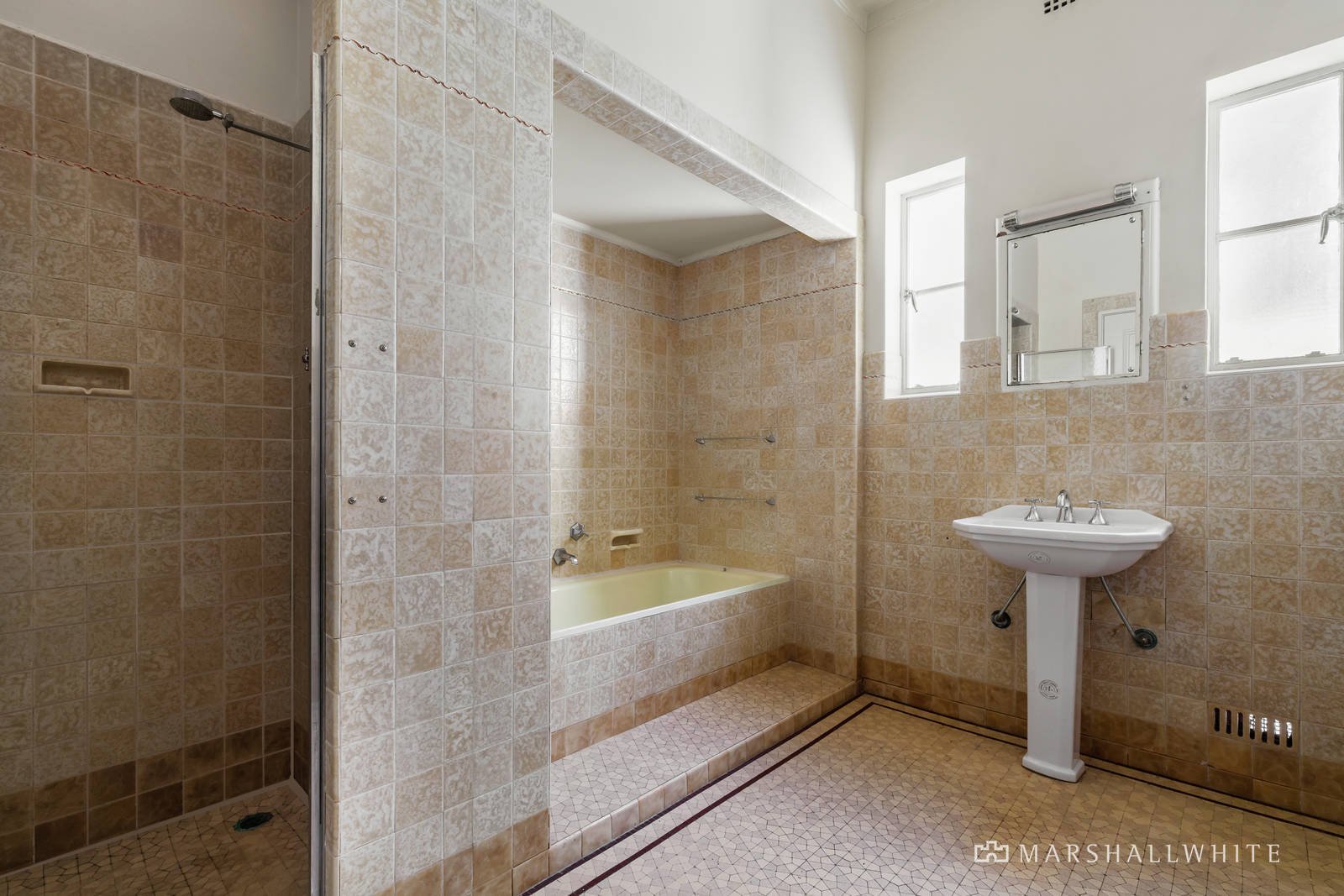 A magnificent example of renowned architect, John Scarborough's distinctive style; behind the picturesque exterior profile, the superbly preserved interior dimensions are replete with original period elements including high ceilings, leadlight windows, and timber floors. The timber panelled entrance hall introduces a generous sitting room with a captivating, curved fireplace, a formal dining room and home office. The main bedroom with bay window and built in robe is accompanied by two additional bedrooms with robes and a pristine original tiled bathroom. The immaculate and well-appointed kitchen featuring 90cm Blanco oven, scullery or casual dining room and adjacent laundry opens to the leafy private garden and double garage with a fabulous loft or saddlery above. This residence's enticing original charm suggests exciting options to rebuild (STCA) or alternatively renovate.