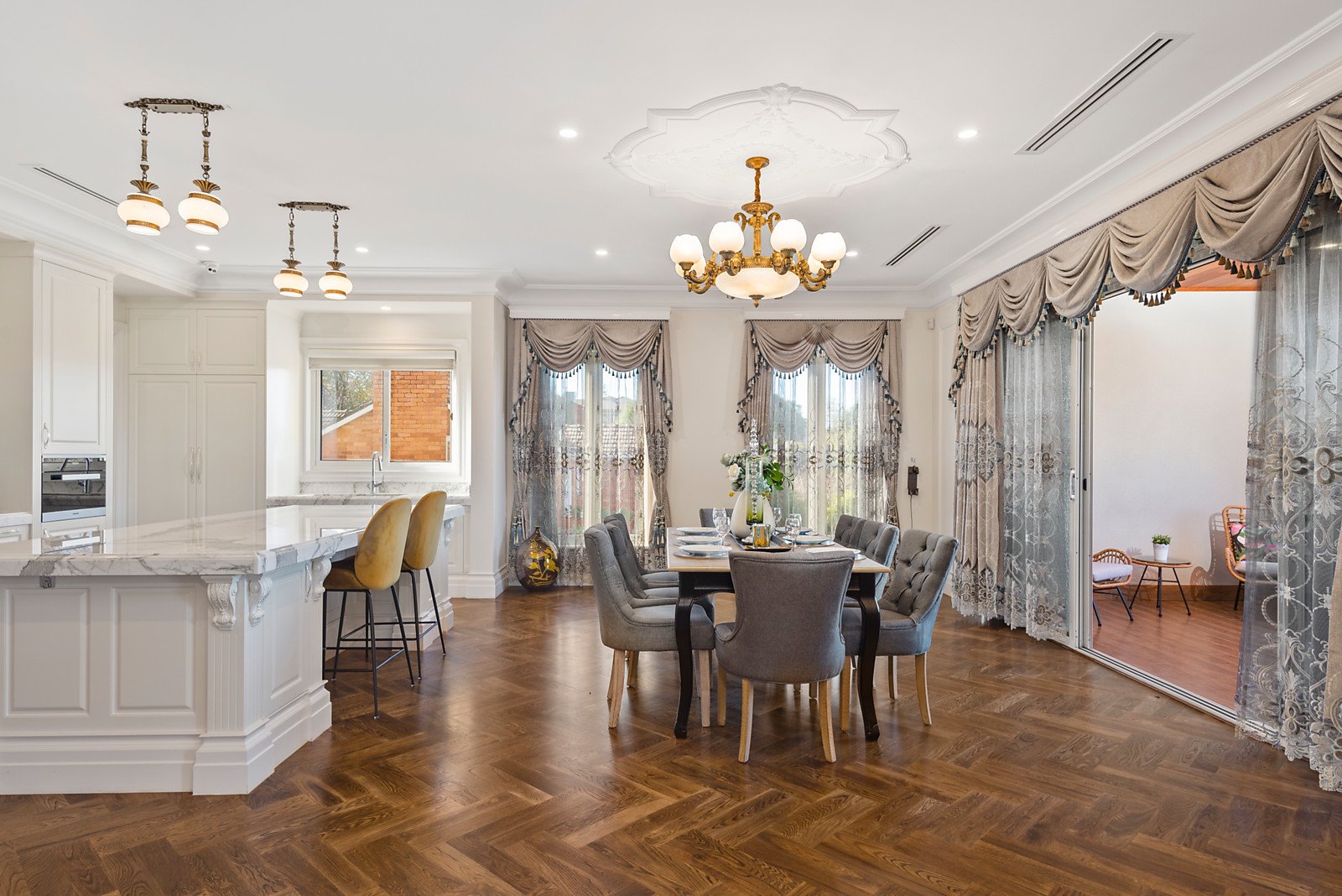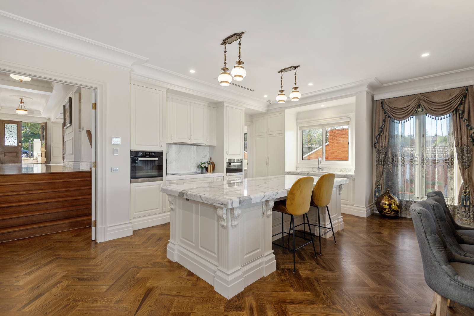 You can even grow your own vegetables in the gourmet garden. Fine craftsmanship adds a premium edge to this bespoke home, with herringbone timber floors, decorative ceilings, handcrafted staircases, and marble-topped cabinetry. Extensive security features, two air conditioning systems, marble-surround gas fireplaces, remote-control gates and keyless entry enhance this world-class home. Sought-after Hosken Street is the perfect location for this prestigious home, minutes to private and public schools, Balwyn's best shopping, Westfield Doncaster, sports facilities, and public transport.