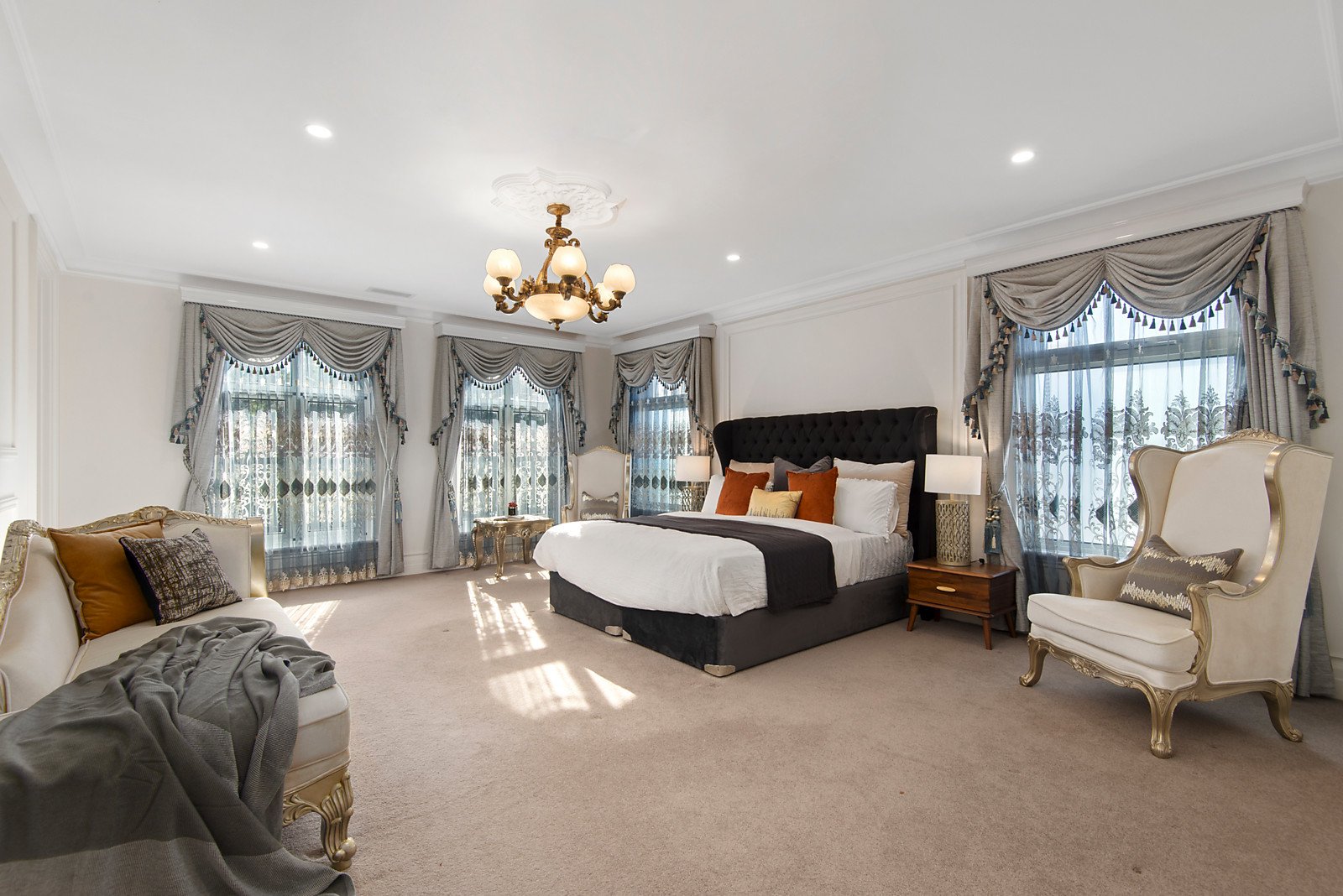 The exclusive location in the Balwyn High School zone is where you can gaze out across Gordon Barnard Reserve, leafy Balwyn and beyond. The scale of the elegant grandeur is extraordinary with five large living zones, five bedrooms each with a deluxe travertine ensuite bathroom, two studies, and one of the biggest parents' retreat you could wish for. Custom-designed spaces are spectacular, from the home theatre with an adjoining wine room and cocktail bar to the ultra-indulgent marble kitchen and butler's pantry, four-car basement garage and four-car off-street parking, and landscaped garden setting.