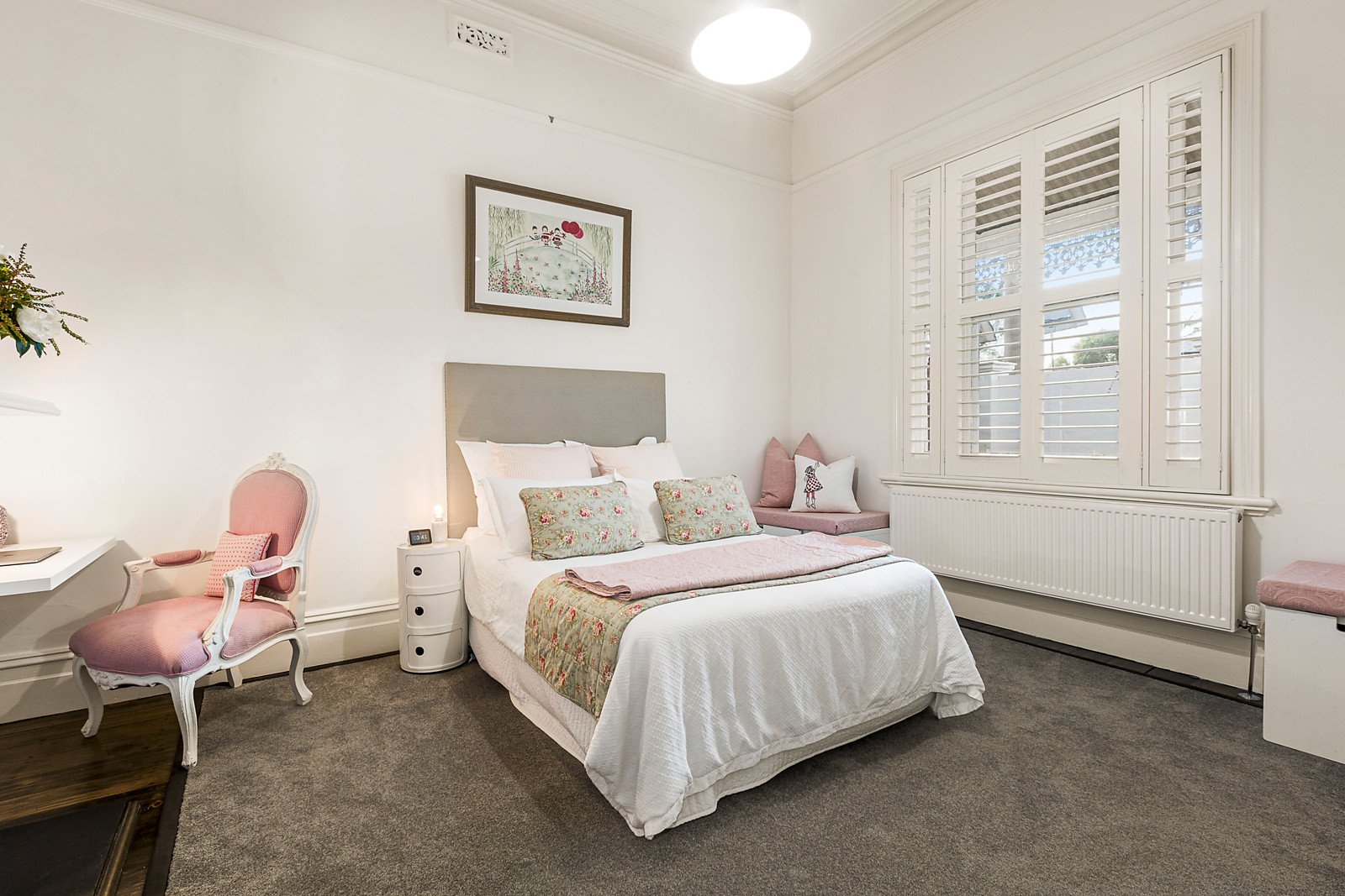 Accommodation encompasses three generous bedrooms fitted with original period details and stylish timber floors, accompanied by a sleek contemporary bathroom with shower, separate inbuilt bath and double stone vanity. A laundry, plentiful storage, hydronic heating throughout and secure double carport accessible via rear laneway complete the home.
