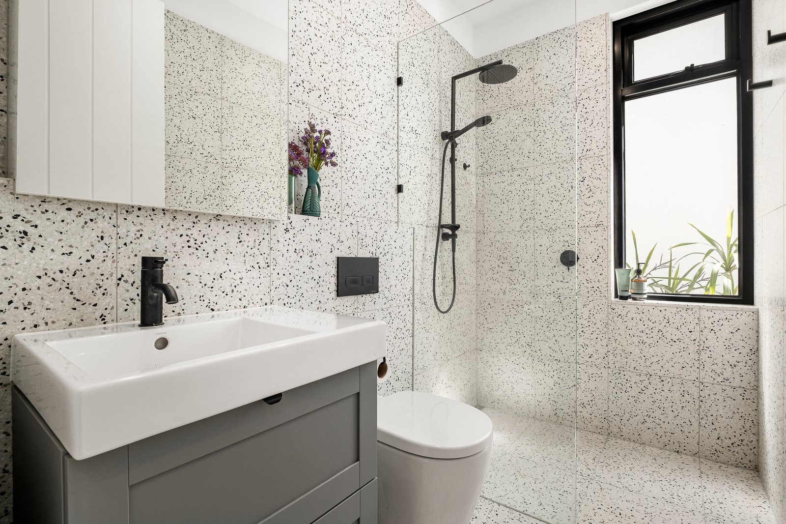 Four serene bedrooms complete the private accommodation, each designed with comfort and longevity in mind. The main bedroom features an ensuite with natural light well, and Victorian ash flooring, while the additional bedrooms boast built-in desks and luxuriously soft 100% wool Berber carpet. Bathrooms impress with terrazzo finishes and refined detail, evoking a sense of timeless indulgence throughout.