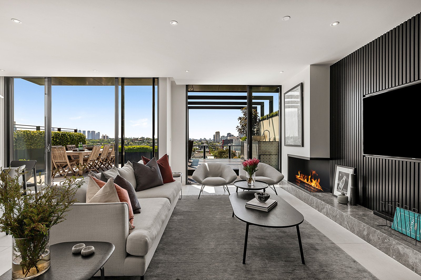 A lavish inner urban lifestyle statement, this sensational 2-level penthouse commanding spectacular uninterrupted city views delivers the ultimate in sophisticated luxury and is enhanced by expansive north, east and west facing terraces with expansive landscaping, multiple entertaining areas and a rooftop spa.