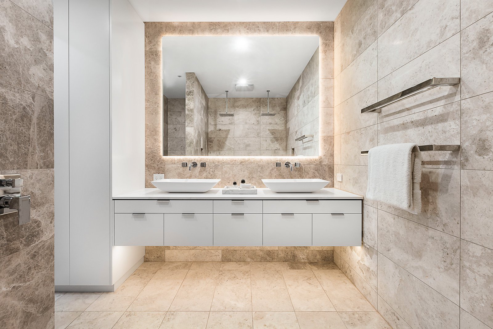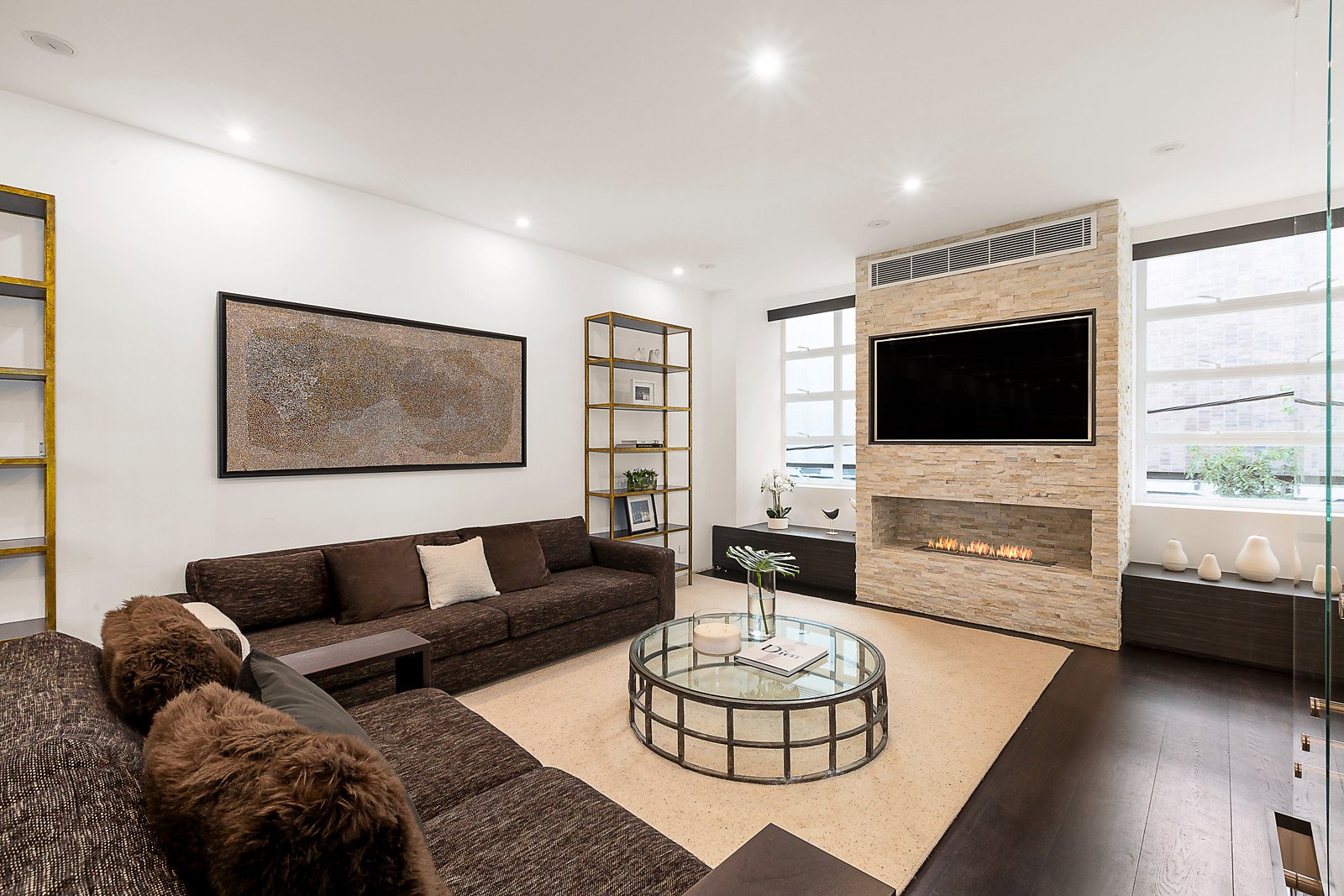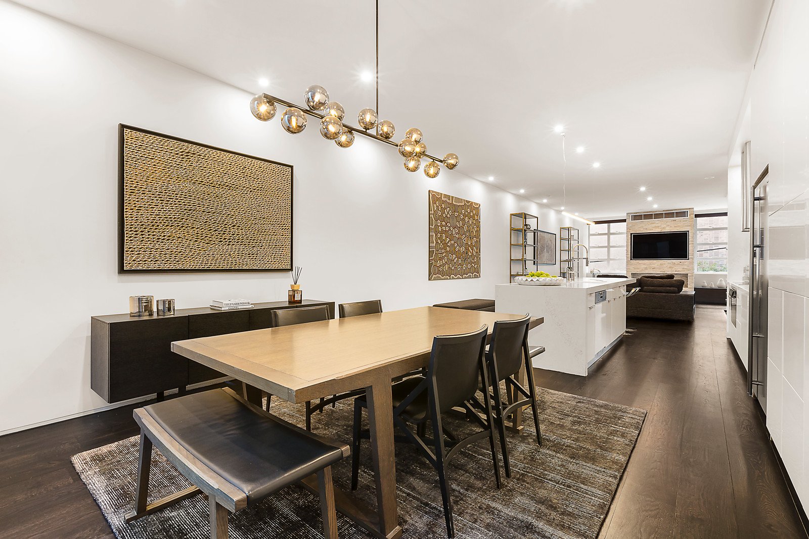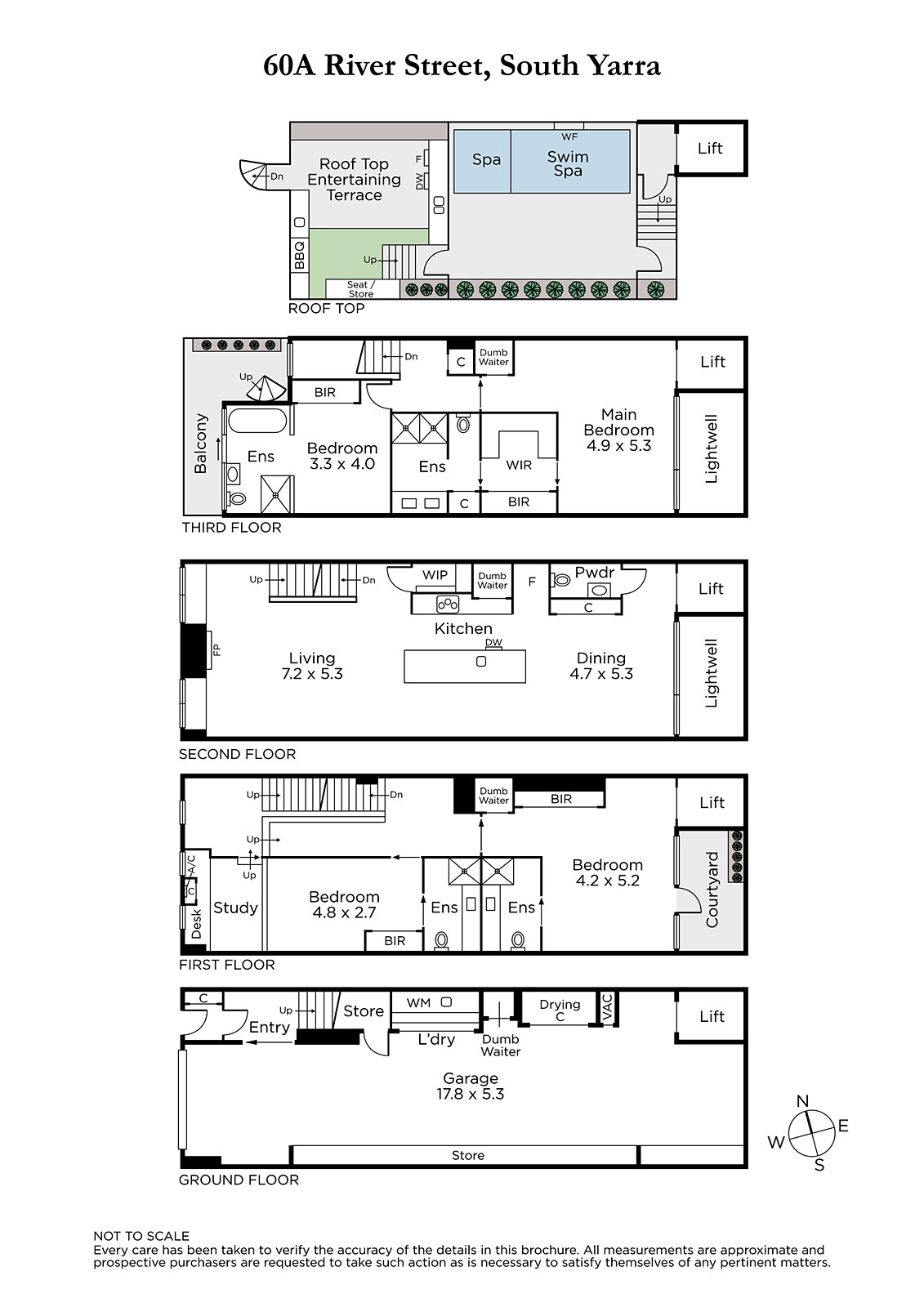 Bathed in light from both ends, the sensational living and dining areas featuring dark Tasmanian oak floors, designer pendant lights and an ethanol fireplace surrounded by stacked stone are either side of a sublime commercial grade Miele kitchen boasting stone benches. The beautiful main bedroom with lavish Limestone en-suite and walk in robe sets a benchmark in opulence that is matched by three additional double bedrooms with built in robes and Limestone en-suites, a fitted study and internal light-well. The spectacular rooftop entertaining precinct comprises a swim spa with waterfall, second spa and large Bluestone al fresco terrace with BBQ and kitchenette appointed with bar fridge, freezer, sink and wok burner.