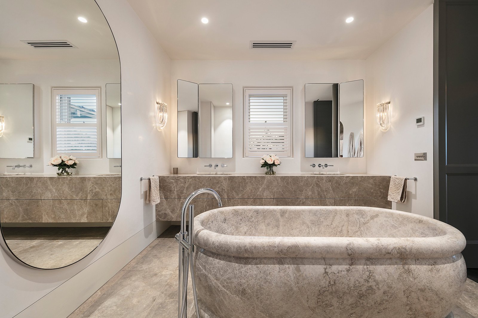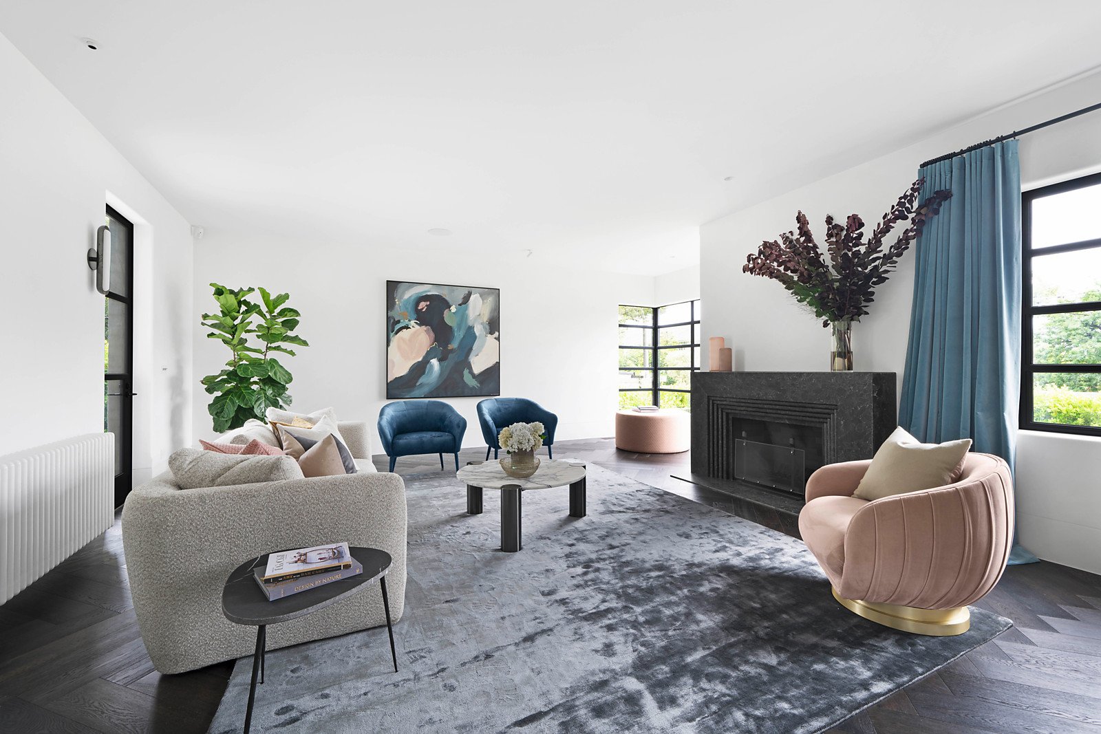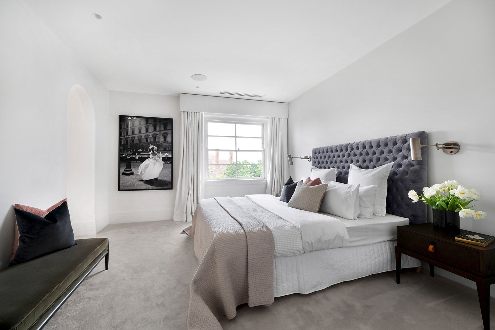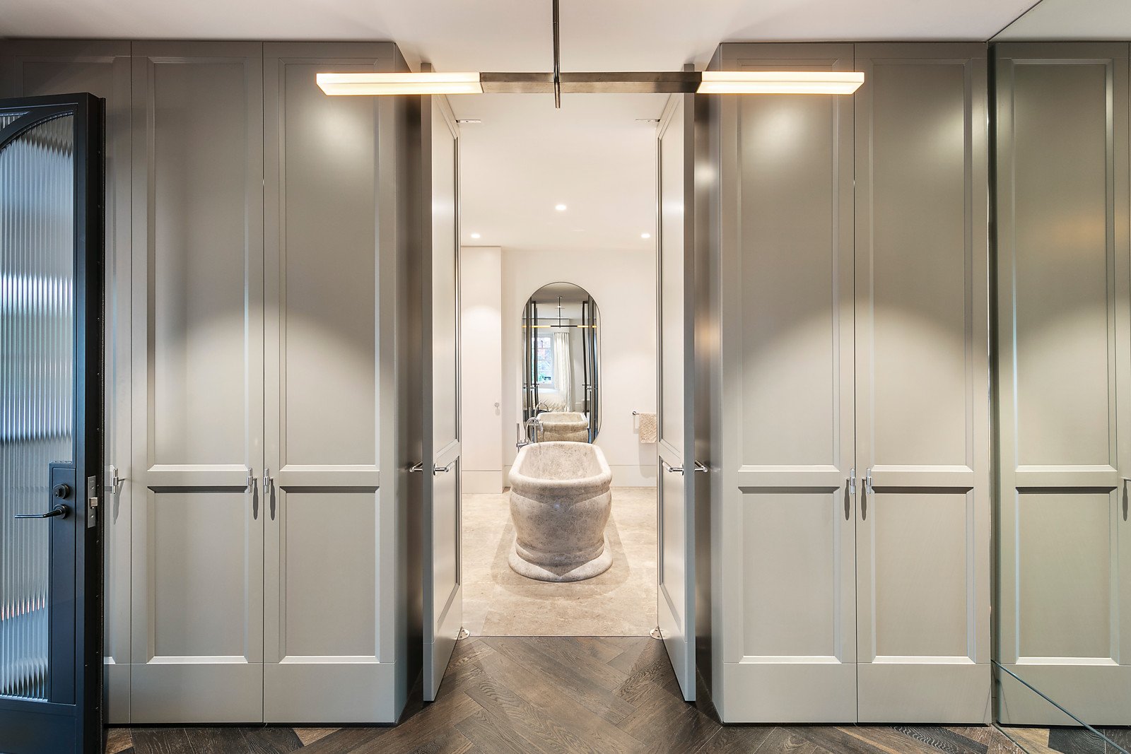 The first floor hosts four exceptional bedrooms, including the luxurious north-facing main bedroom suite that relishes his and her dressing rooms, one with a balcony with handmade terrazzo Italian tiles, Superyacht carpet and an exquisite en suite with a solid marble freestanding bath. A study on this level is perfect for the kids, another study features on the ground floor.