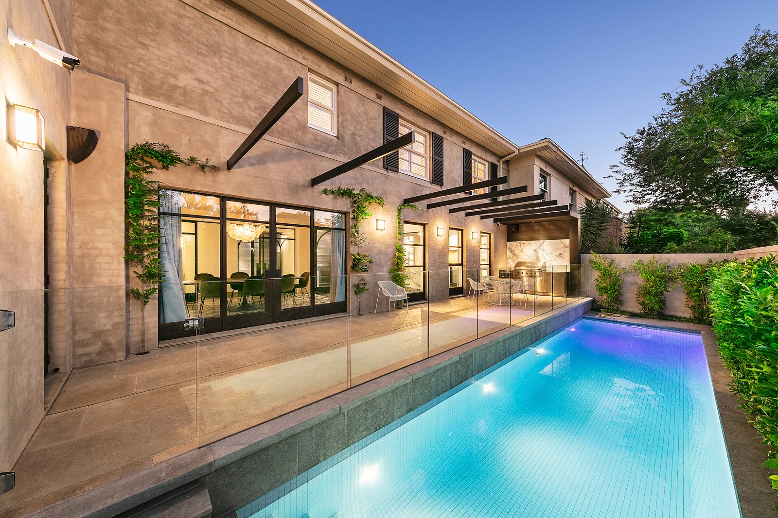Occupying a prized corner setting with a second frontage to Kooyong Road, the property's desirable north and west aspect maximises the full use of the low-maintenance entertainer's garden with a gas heated magnesium swimming pool. Includes secure parking for two cars.