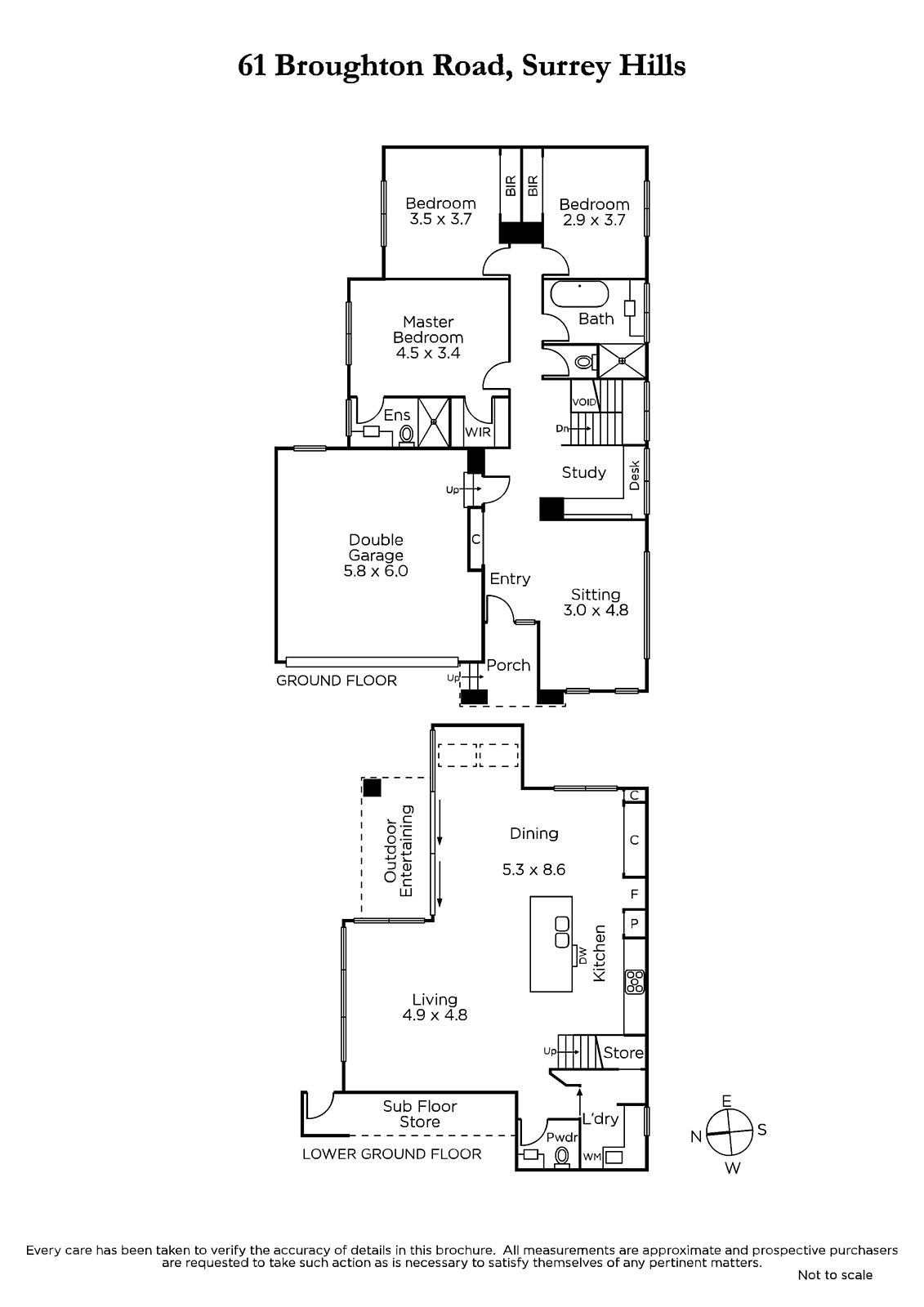 An eye catching façade featuring Daniel Robertson half bricks introduces the interior comprising on the upper level, shiny polished timber floors flowing past a sitting room and study area to three bedrooms, main with a WIR and pristine ensuite plus a family bathroom. With a lower level powder room and laundry plus a light-filled family living and dining area incorporating a sleek kitchen equipped with CaesarStone bench-tops, a wide island bench and premium Fisher & Paykel appliances. All flowing to a sunny north-facing courtyard lined with ornamental trees - perfect for relaxed indoor/outdoor living and entertaining. Other features of this instantly appealing home include alarm, video intercom, zoned ducted heating and cooling, high quality fixtures and fittings, fully-tiled bathrooms, Plantation shutters, under house storage and remote double garage with direct internal access.