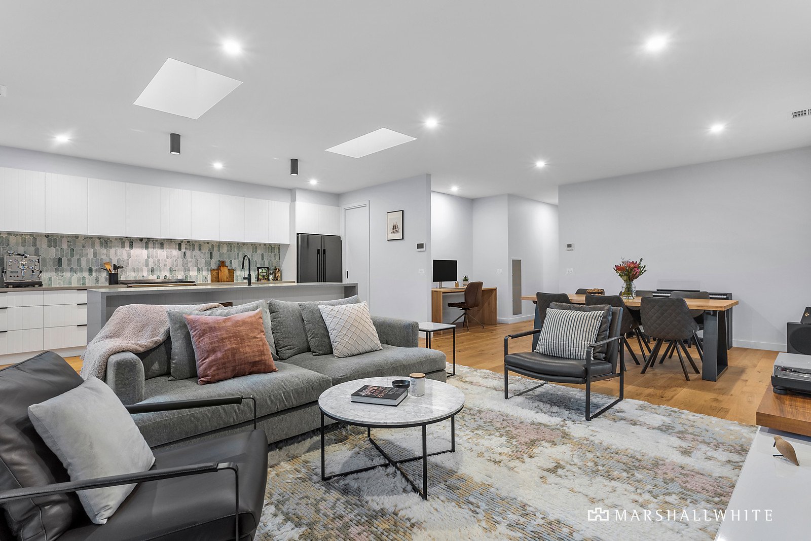 Luxury features comprise: ducted electric heating and cooling system, security system, natural Oak floorboards, underfloor heating in both bathrooms, plumbing provisions for fridge, integrated dishwasher, Artusi Granitek kitchen sink and laundry trough, Quantum Quartz benchtops in kitchen, butler's pantry, laundry and bathrooms, Rinnai Infinity hot water system, double glazed windows throughout (including doors and skylights), ample skylights throughout, Western Red Cedar cladding (front), Colorbond roof, Silvertop Ash deck, exposed aggregate driveway and DLUG with internal access.