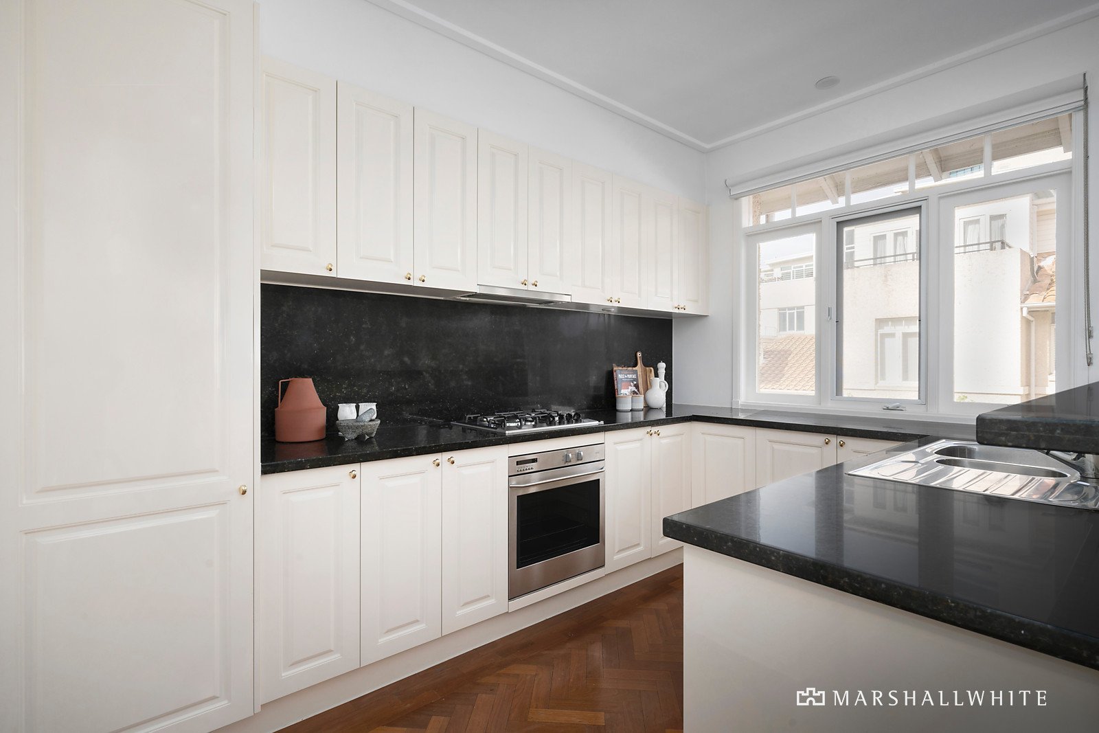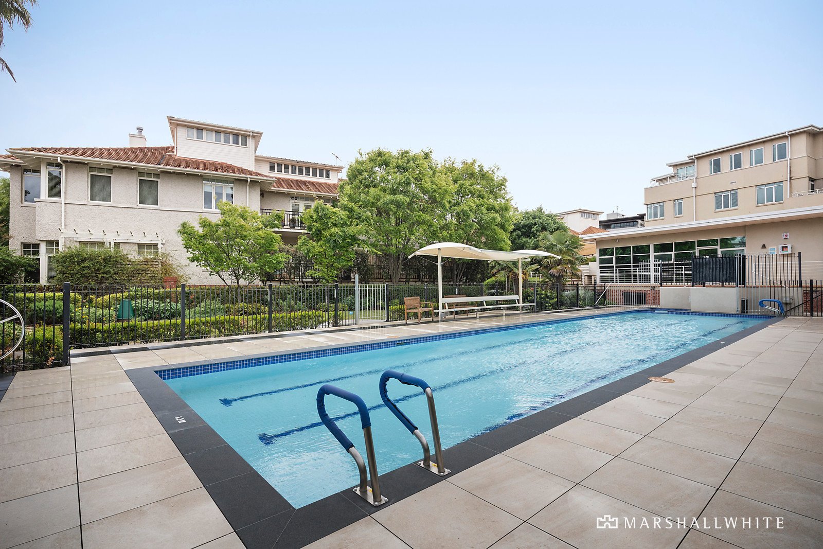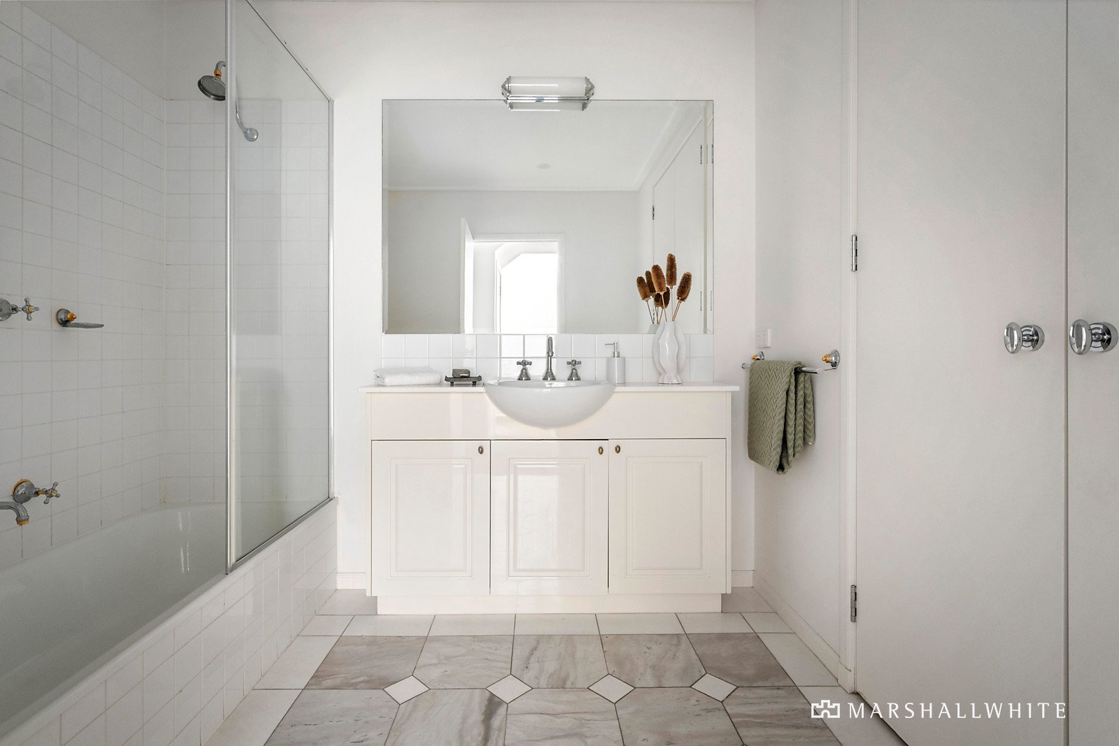 A walk-in robe and a light-filled ensuite complement the upstairs main bedroom, with two additional robed bedrooms on the primary level, sharing a central bathroom. Ideally positioned between the beach and Lagoon Reserve, it's a short walk to Bay St's thriving shopping and dining precinct, transport, Albert Park College, and Victoria Avenue's picturesque village; additional features include side-by-side parking for two cars, two secure storage cages, a fitted European laundry, reverse cycle heating and air conditioning, and access to the residents' gymnasium, swimming pool, spa, and BBQ facilities.