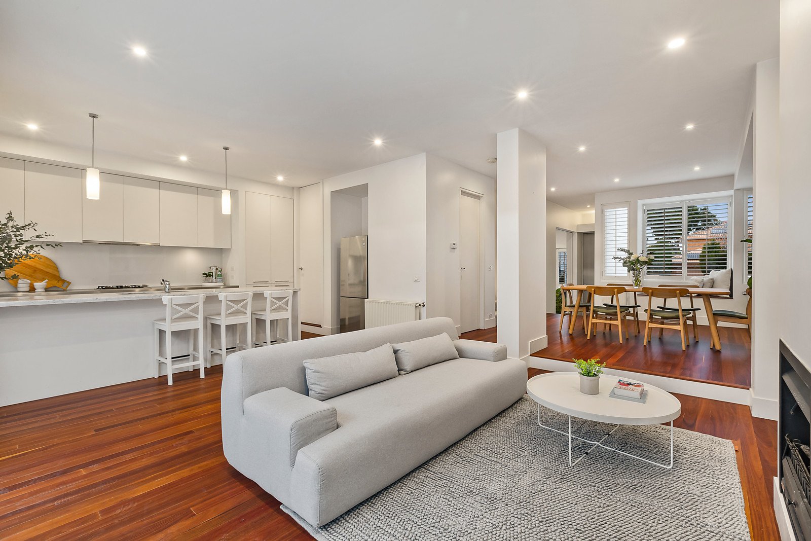 Three levels of architectural excellence and quality are custom-crafted for easy living in the heart of Brighton. Refined design by Edgard Pirrotta shines bright on every level of this home, featuring three light-filled living and dining zones, three bedrooms and the option of a ground-floor fourth bedroom/study, a gourmet kitchen, two marble bathrooms, and a four-car basement garage with a turntable. This is low-maintenance living at its finest, perfectly located metres from Church Street, close to Brighton Primary School and William Street Reserve, and a short walk to Firbank, Brighton Grammar School, Bay Street and the beach. Imagine the lifestyle you can have here, with the sun-filled family room opening onto a full-width entertainer's courtyard with a built-in barbecue, automated sun awning and room to relax. Love the kitchen's fine balance of luxury and practicality with marble and stainless steel benchtops, a butler's pantry/laundry zone, Smeg appliances and courtyard access. The main bedroom zone excels with a marble ensuite, walk-in wardrobe with a dressing area, and a decked balcony. There's big skyline views of Brighton Town Hall's clock tower and St Cuthbert's church spire from upstairs, and nothing to do but move in and enjoy this bespoke home. That's easy with such a premium fitout, including high ceilings, hydronic heating, solid timber floors, new carpets, plantation shutters, a window seat that doubles as storage space, and a gas fireplace in the family room. Multi-car basement parking and two storerooms, ceiling fans in all bedrooms, and ducted cooling and vacuum systems complete this fine home on one of Brighton's wide and well-positioned streets.