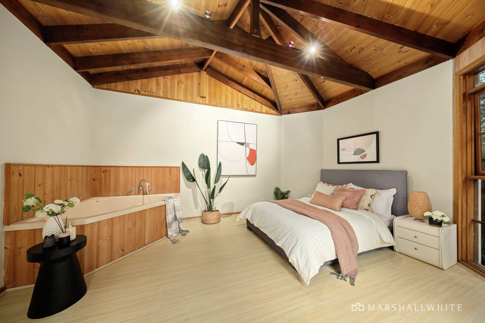 Outside, family and friends gather atop a brick patio for sunny alfresco celebrations, set amid lush, lovingly tended gardens and a rambling lawn for kids and pets to play. Secluded at the rear of the garden, a two-room bungalow offers flexibility as a studio, workshop, or entertaining space, alongside the option to convert its plumbed and powered interior into self-contained accommodation.