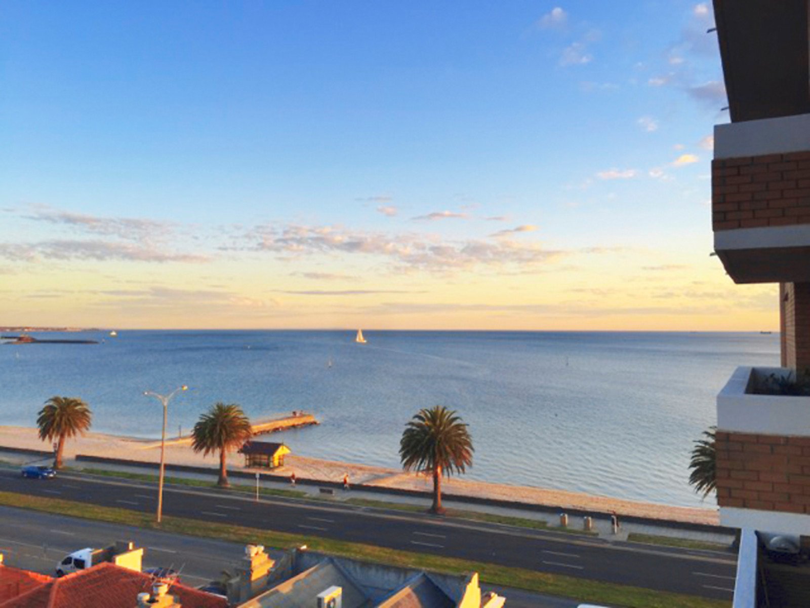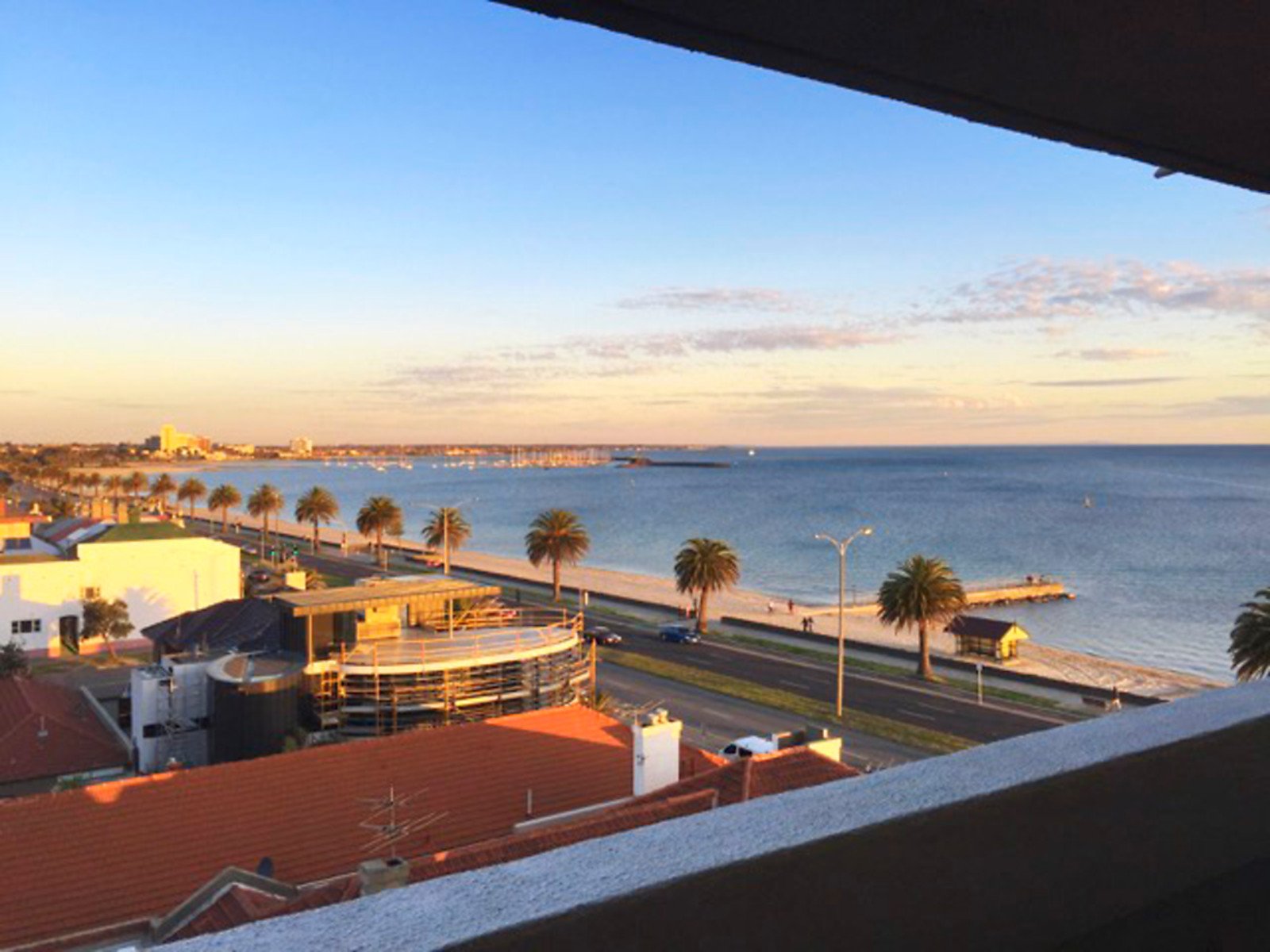 Enhanced by an inspired architect's contemporary renovation this spectacular sixth floor apartment, positioned at the northeast corner of a well-maintained c1976 beachfront development, presents exceptional Bay and CBD views. A brilliant open plan living, dining and entertaining space features a pristine kitchen with Caesarstone benchtops opening to a balcony with exceptional views across Port Phillip Bay, district and beyond. Filled with northern light, two gorgeous bedrooms (BIRs) offer city skyline views, accompanied by two luxury bathrooms and a cleverly designed study. Additional attributes include storage, lift access, off-street parking (lock up garage), shared store room and security intercom. Seconds from the beach and a short walk to Armstrong Street shops and Albert Park village.