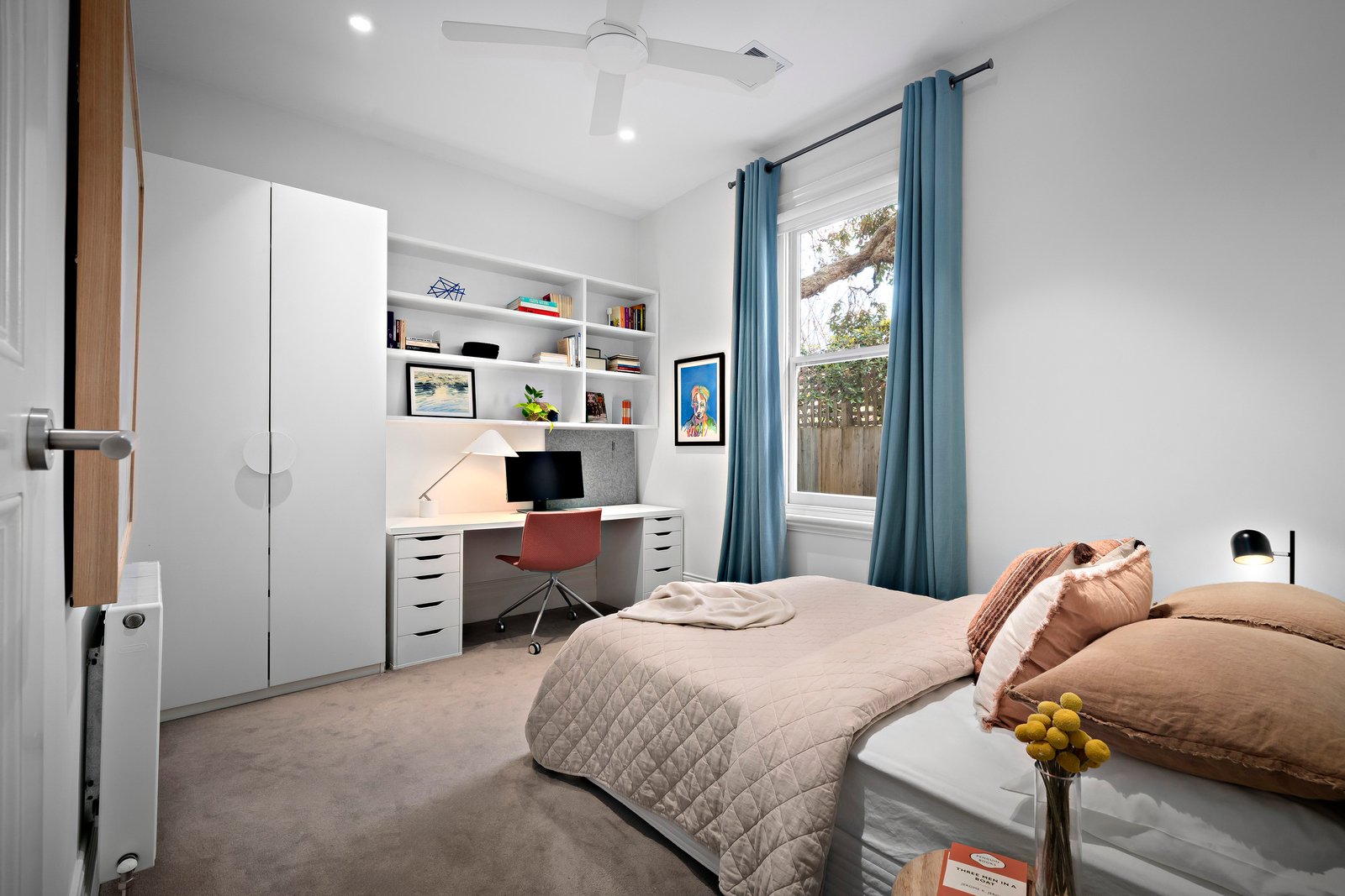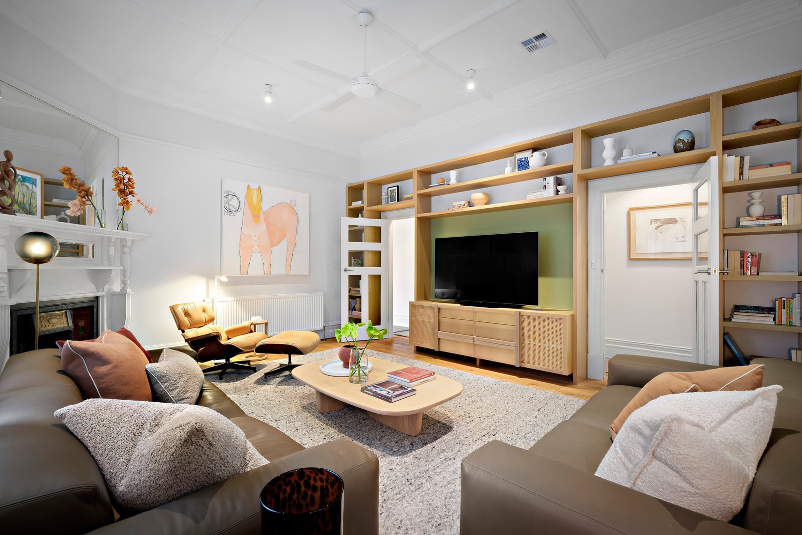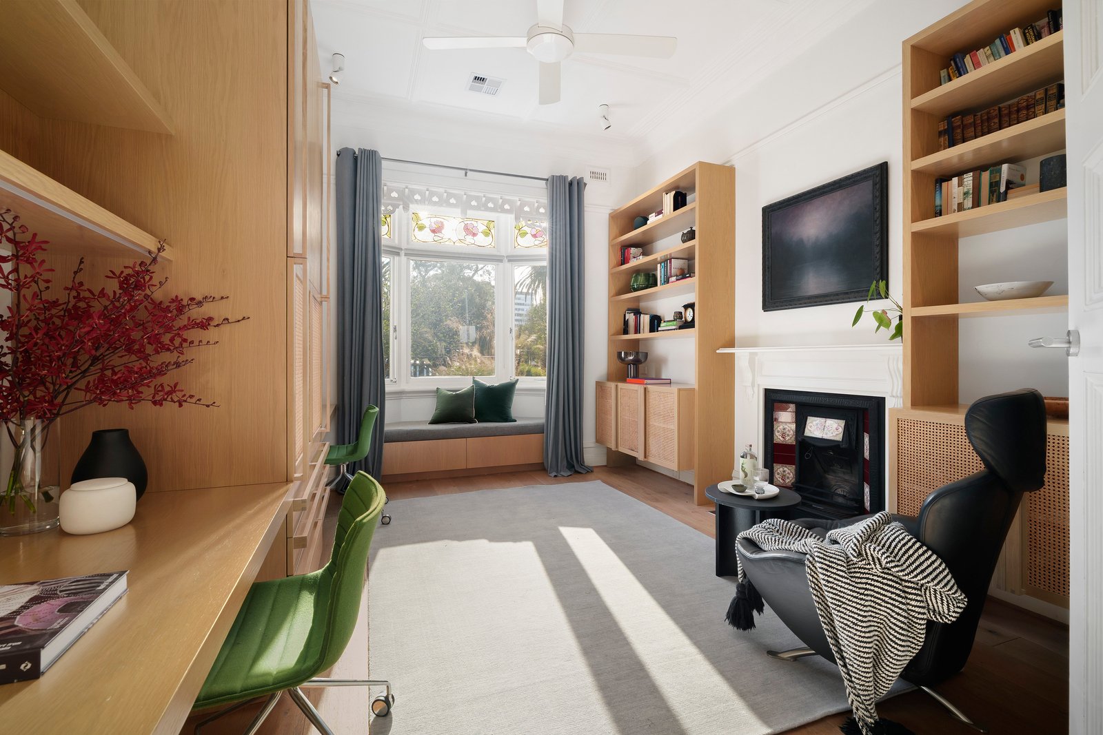 In a peaceful, tree-lined pocket of St Kilda, this freestanding double fronted Edwardian c.1915, single-level sanctuary has been impeccably renovated to blend timeless elegance with modern luxury. The home’s Beatrix Rowe-designed interior showcases bespoke joinery and marble finishes, soaring ceilings with designer lighting, and rich period details from leadlight windows to original fireplaces. A generous floor plan offers versatility for downsizers, professionals, and families alike, it offers four generous bedrooms, two bathrooms and multiple living zones for easy entertaining and family comfort.
