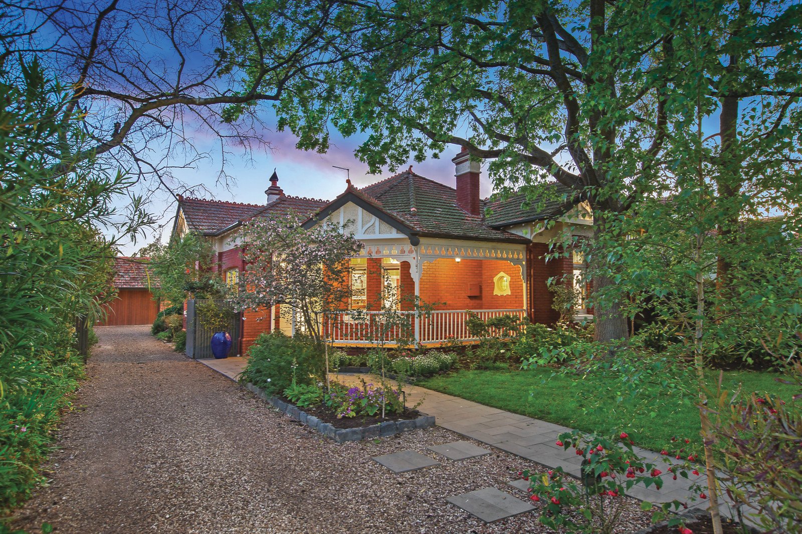 The perennial appeal of classic Federation architecture and a Gascoigne Estate address is further enhanced by the addition of 21st century architect designed style through the impressively proportioned and cleverly zoned dimensions of this illustrious c1900 solid brick residence. Framed by a magnificent Liquid Amber and a tessellated verandah, the gracious reception hall featuring timber fretwork, leadlight windows and ornate ceilings introduces a refined study with open fireplace and elegant sitting room also with an open fire. The ultra-stylish and spacious family living and dining spaces featuring pale oak floors and a sleek premium Smeg kitchen boasting marble benches and a separate marble breakfast bar open to the private leafy garden. The beautiful main bedroom with designer en-suite, walk in robe and open fire, second bedroom with marble open fire and chic bathroom are downstairs while two additional double bedrooms, third stylish bathroom and balcony are upstairs. In a desirable leafy pocket close to schools, trams, Central Park and Village shops, it includes irrigation, laundry, roof storage, garden sheds, auto gates and double garage. Land size 1,001sqm (approx.)
