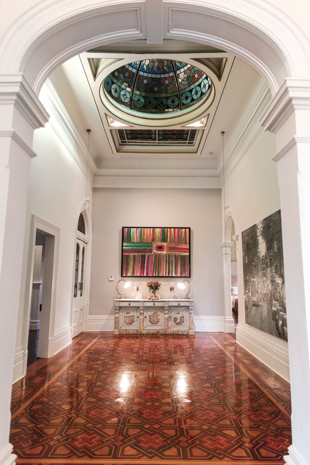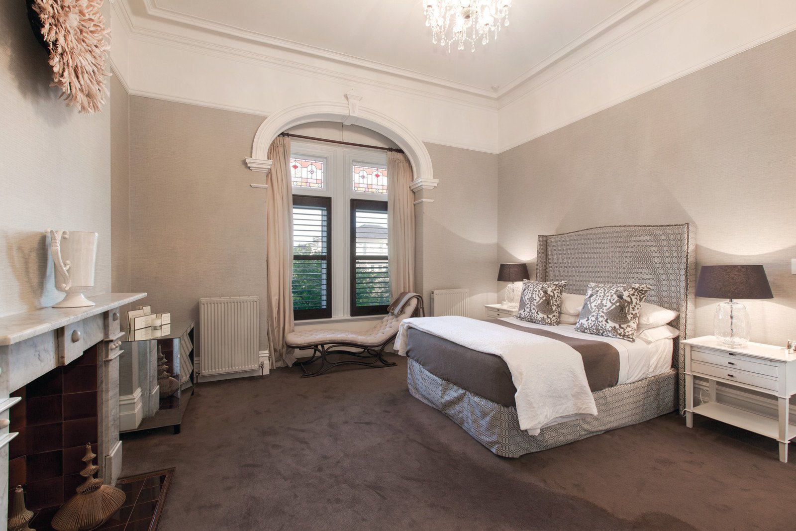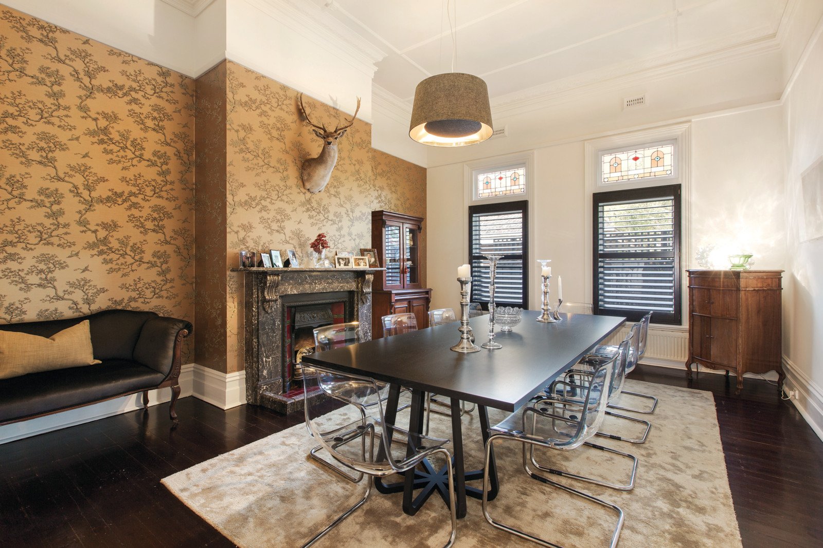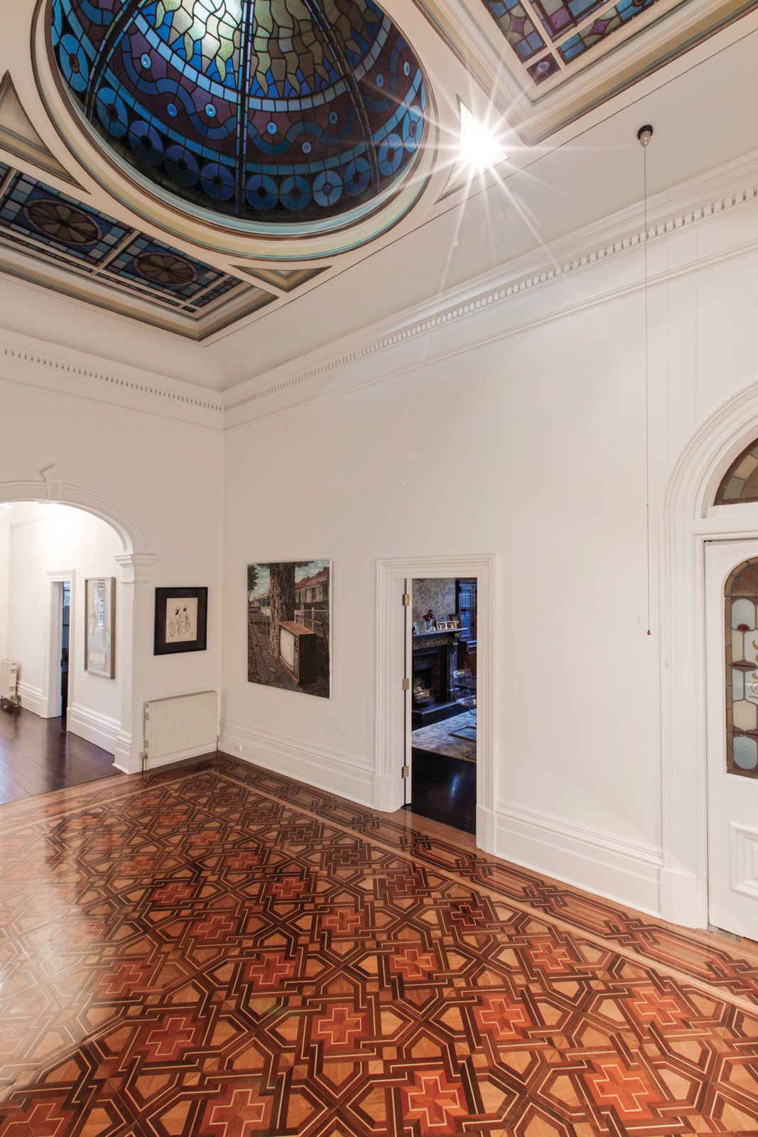 This landmark family home features a leafy formal garden setting, timber & iron lacework return verandah and tuck-pointed brick façade preceding an immaculately presented interior showcasing its intricate original period features including plain and coloured leadlight sky windows, ceiling roses, ornate cornices and marble OFPs. With beautiful formal rooms complemented by sympathetically renovated and extended informal living areas providing wonderful family living and entertaining options. The accommodation features a triple arched hallway and parquetry reception area with dome ceiling leading to a sitting room with bay window and doors to the front verandah, dining room, four bedrooms, main with marble ensuite and dressing room, two marble family bathrooms, study and wine cellar. A superb family room with OFP and stylish kitchen/meals with stone bench-tops and Ilve gourmet stove flows to a laundry and private paved alfresco area with heated in-ground pool gently shaded by a mature Oak tree and leafy easy care gardens.