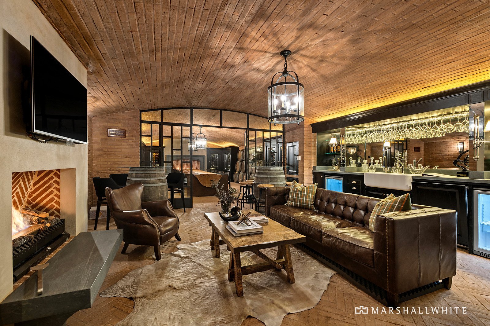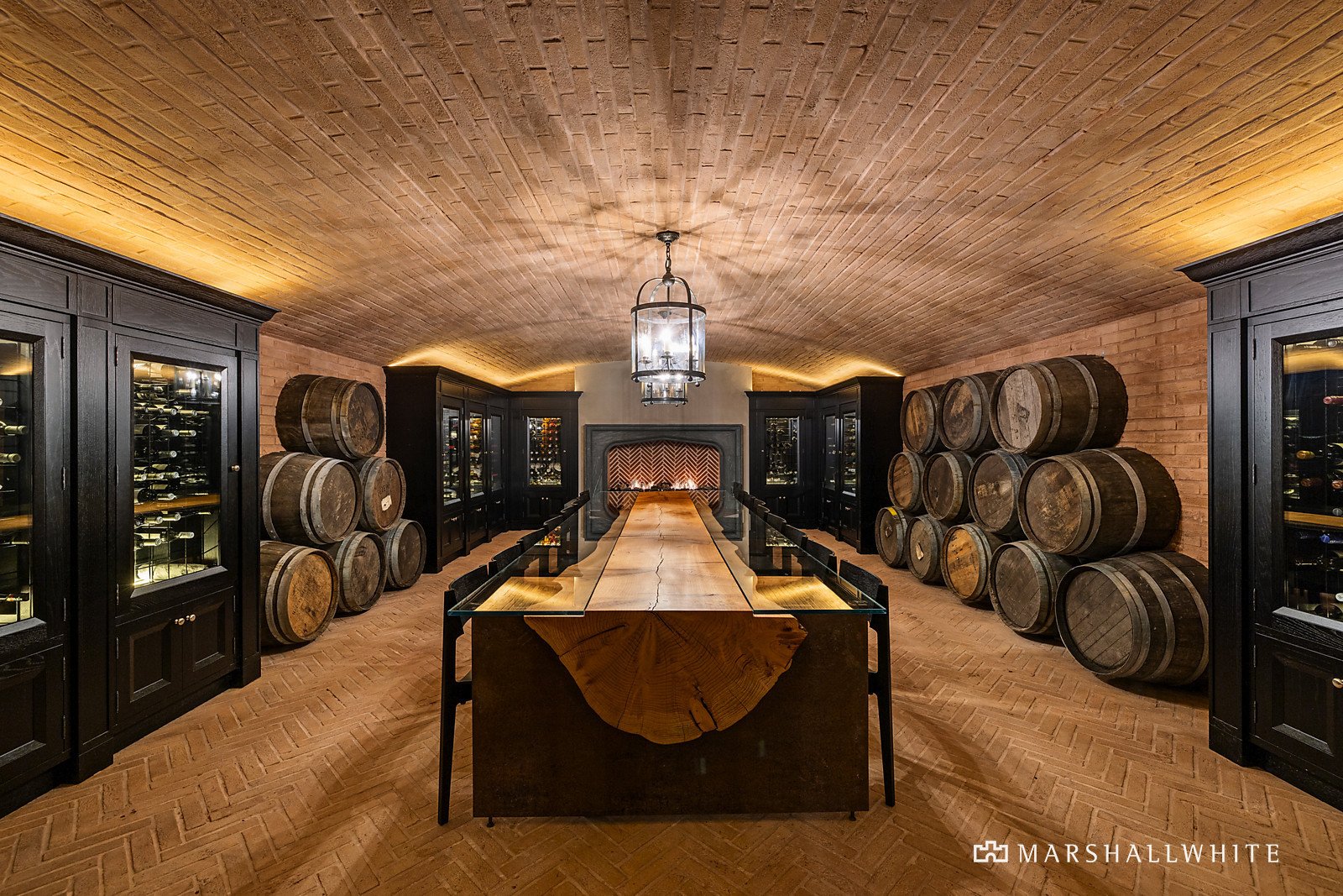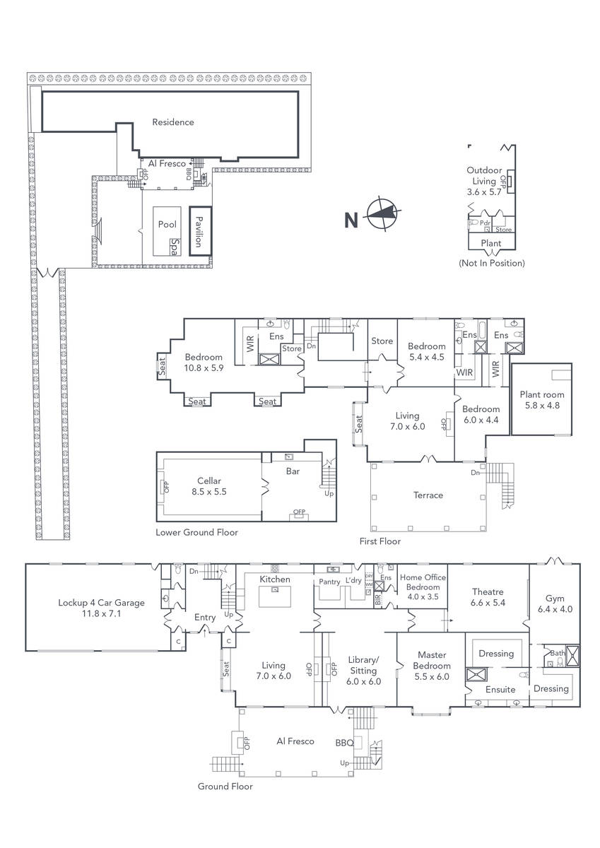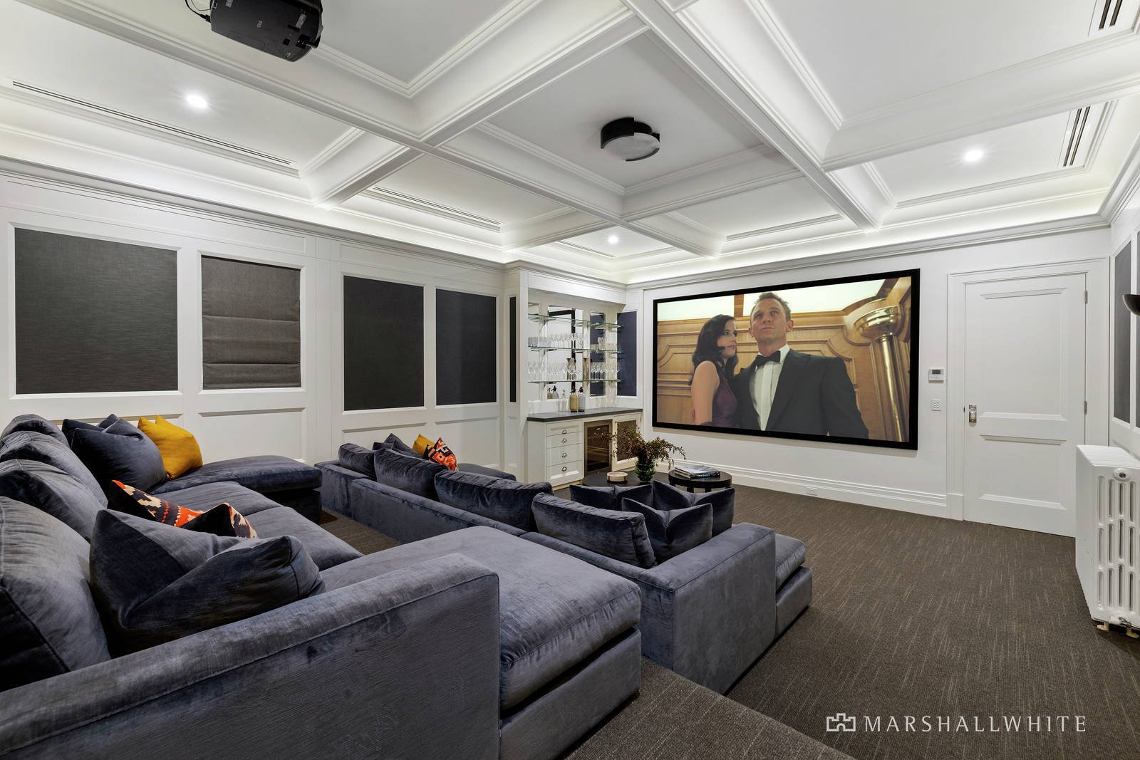 A sensational home theatre room with built-in bar and a gym with steam-room/bathroom highlight the family amenity while a cavernous temperature-controlled basement wine cellar and tasting room with 2 open fires evokes memories of Europe with its Italian brick arched ceilings and floors. The lavish downstairs main bedroom suite with dual dressing rooms and opulent en suite sets a benchmark in luxury that is met upstairs by an alternate main bedroom with walk in robe and en suite, two additional bedrooms with en suites and walk in robes, a spacious retreat and large balcony. A versatile 5th bedroom with en suite and robe on the ground level is ideal for guests or as a home office.