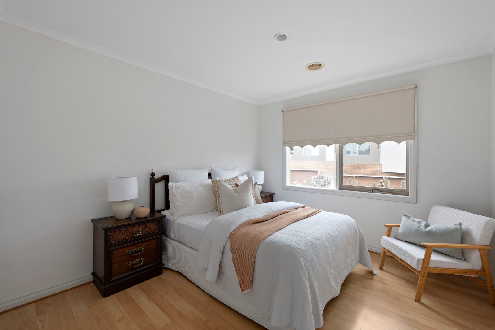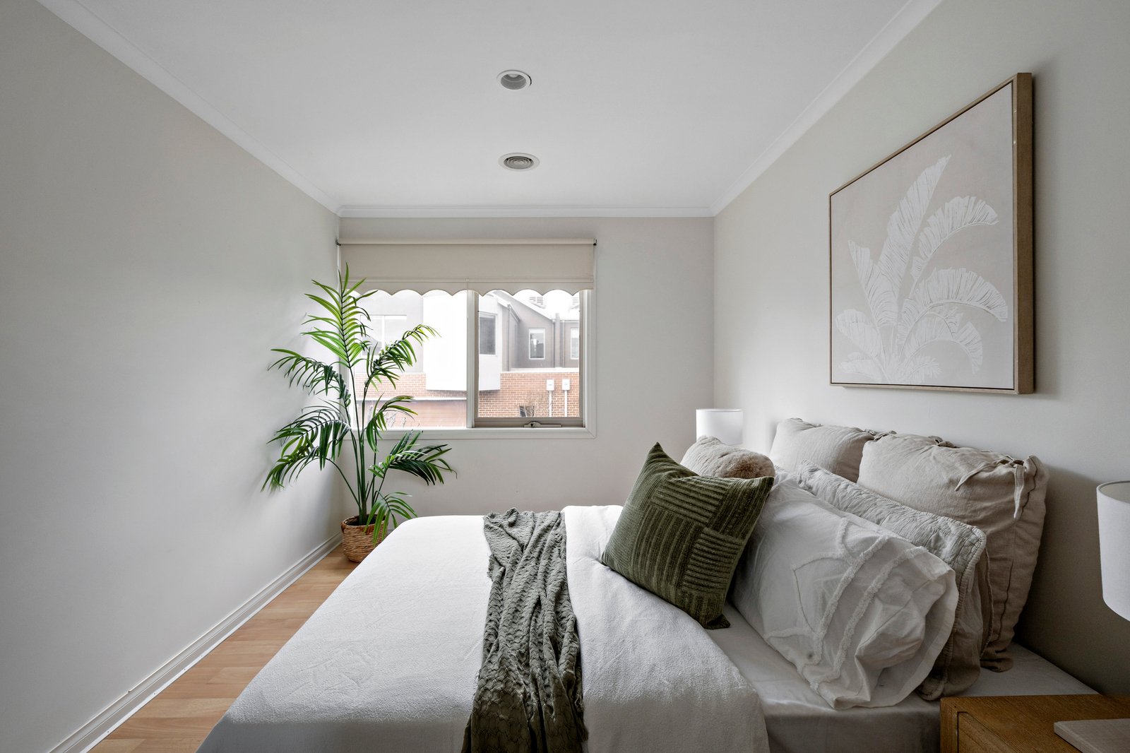 Set behind a picket fence, the standalone home on its own title, has been held by the same family for more than 20 years. Lovingly maintained and updated over the years, the fresh neutral colour palette, open plan living space and gleaming renovated floor-to-ceiling tiled bathrooms offer timeless aesthetic appeal. The zoned layout is ideal for family functionality and single level liveability with the main bedroom and dual-access ensuite bathroom on the ground level, and two further bedrooms along with the main bathroom on the upper level.