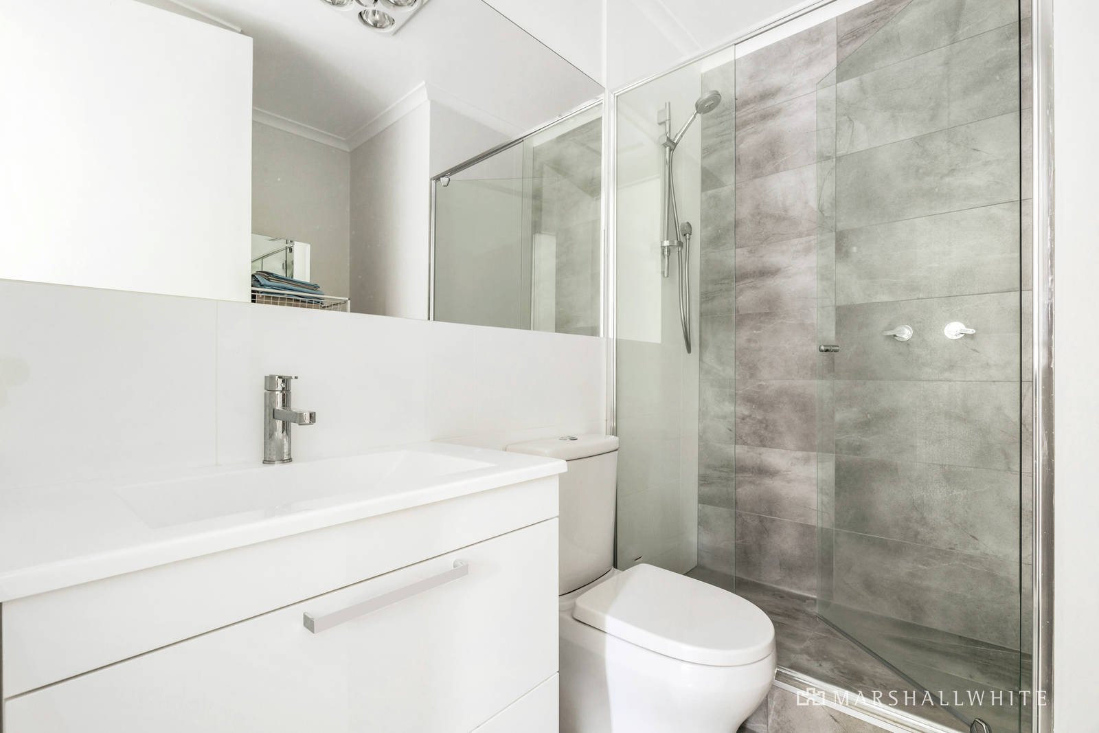 Secluded behind a high walled northwest facing forecourt, the entrance hall introduces a light-filled living room overlooking the garden, a gourmet kitchen with stone benches and bright dining area or study opening to a private northeast courtyard accessing the garage. The two double bedrooms upstairs each include a stylish en suite and built in robes.