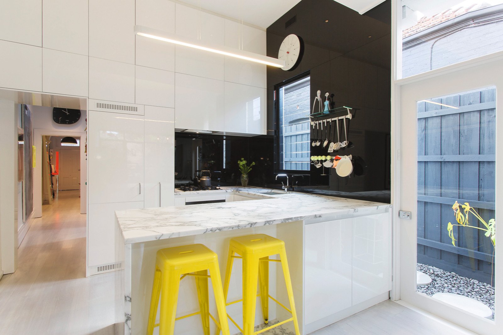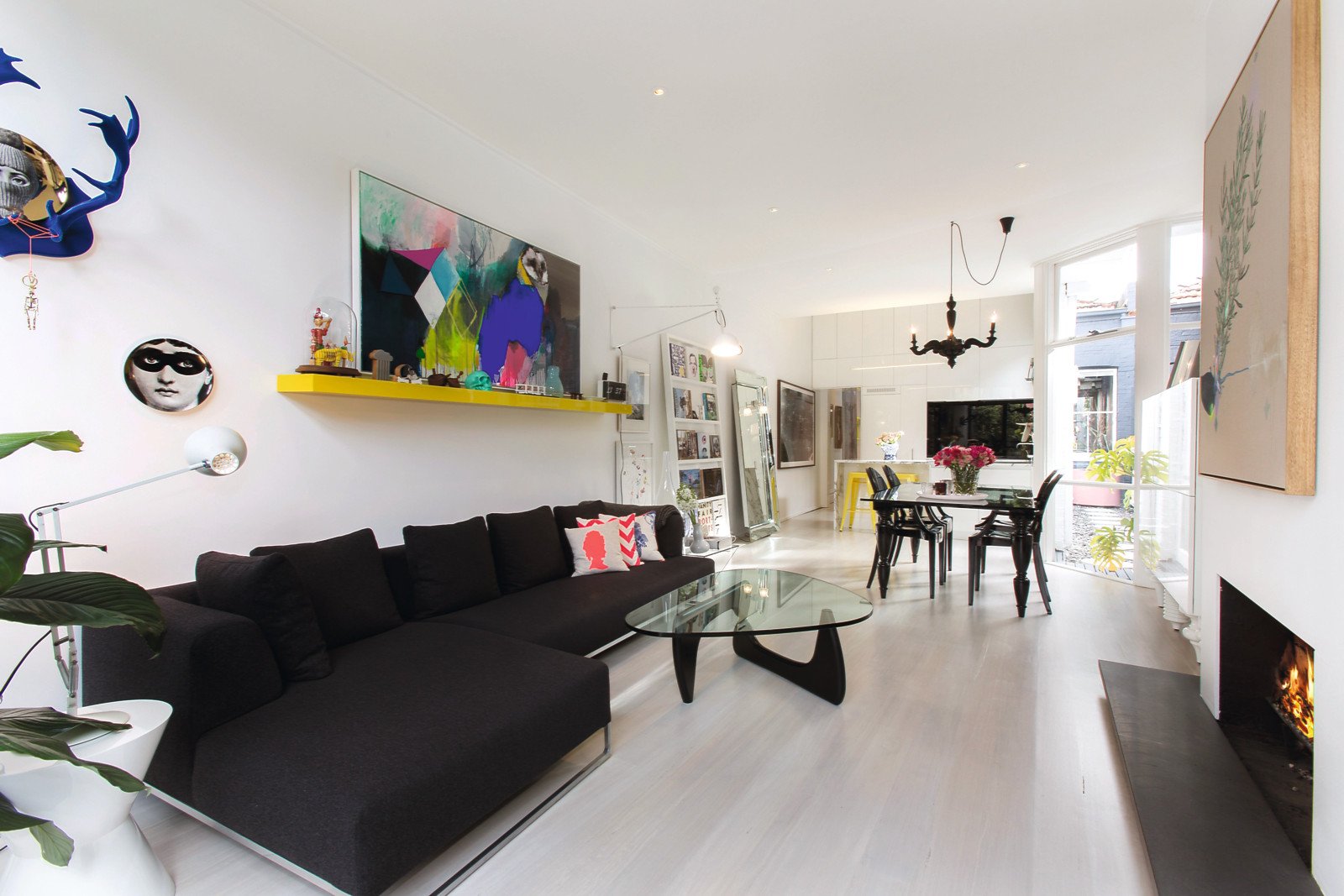 A refined pallet of materials and finishes has created an elegant and luxurious interior. Making a spectacular first impression, limed timber floors are contrasted with sensational splashes of colour on oversized industrial sliding doors and glorious high ceilings that distinguish the arched hallway. Two beautiful bedrooms both featuring period open fireplaces and built in robes share a smart bathroom.