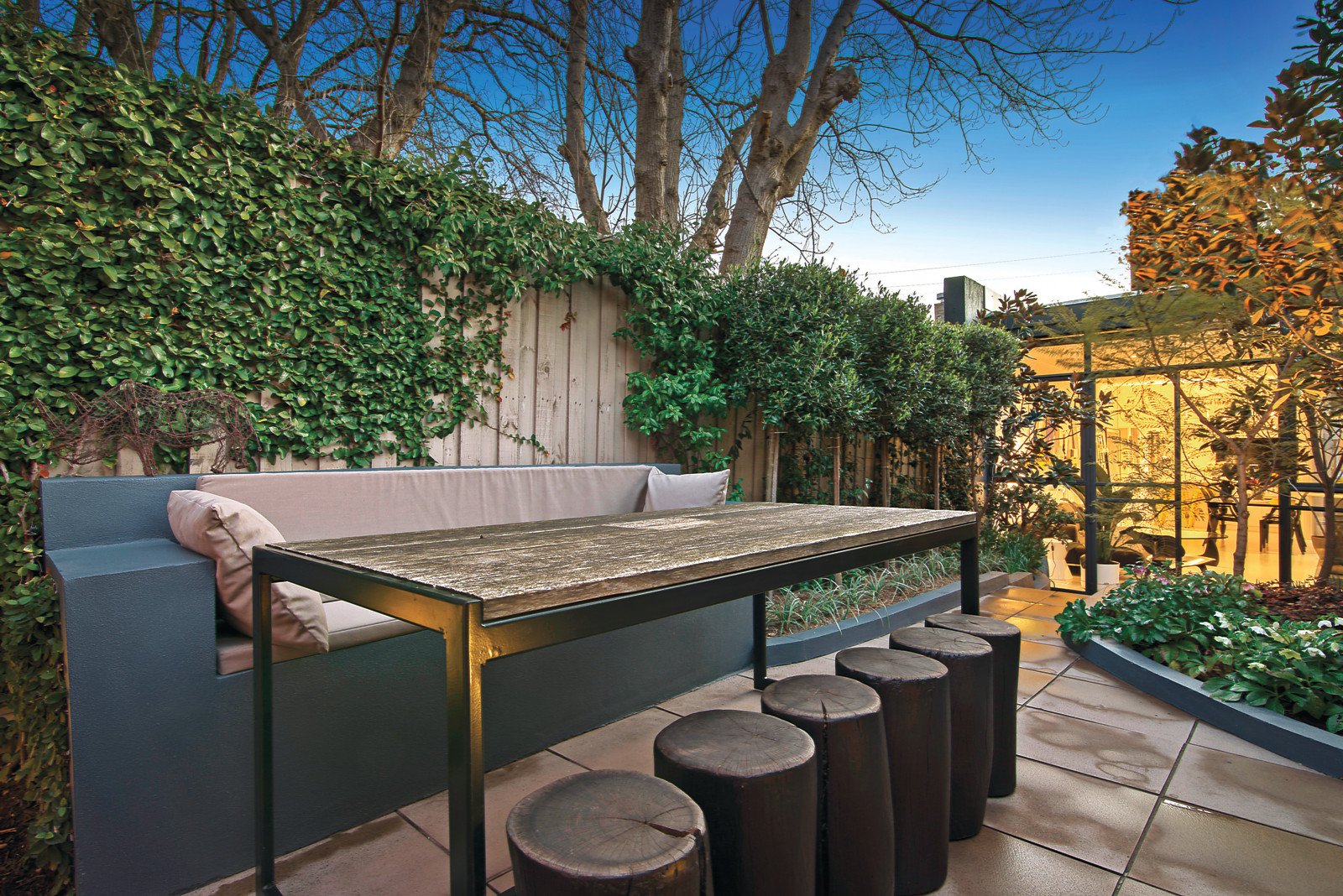 The modern streamlined kitchen boasts marble benches, Miele appliances and an integrated Liebherr fridge/freezer and Miele dishwasher. The private northeast lush garden oasis perfect for entertaining is viewed through steel framed windows and doors. This provides a strong and refined focal point to a luxurious living and dining room warmed by an open fire.