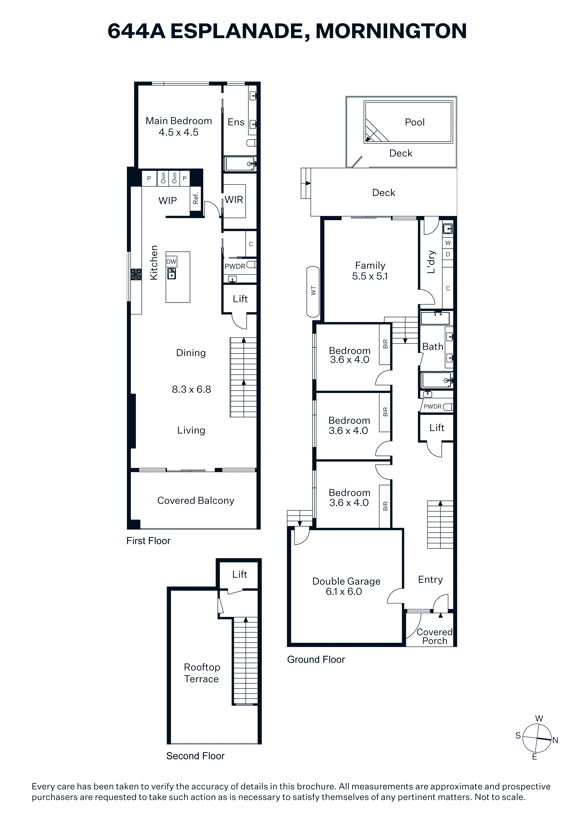 Designed for optimal water views, the highly considered reverse layout features first floor open plan living and entertaining, with banks of sliding glass opening to a broad undercover alfresco balcony overlooking the Bay. Defined by a large stone island bench, the gourmet culinary space is equipped with Asko appliances, including an induction cook top and double multi-function ovens, while a guest powder room and the lavishly sized main bedroom suite, with walk-in robe/dressing room and luxe double shower ensuite are also on this level.Take the stairs or the lift to the rooftop terrace, with automated awning, where the water views extend from Arthurs Seat to across the Bay to the You Yangs and is the perfect spot to enjoy wonderful sunsets.