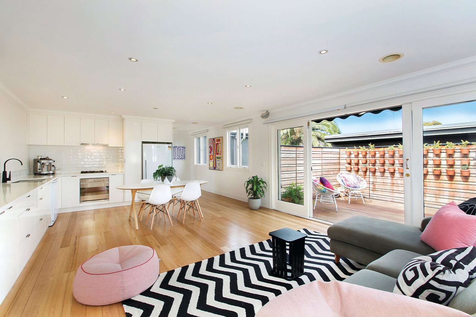 Classical lines define every space of this desirable dual level home, ideally located and far larger than first anticipated. Two downstairs bedrooms, plus study surround a central travertine bathroom accompanied by a completely private courtyard garden while a main bedroom or additional living on the upstairs level is served by a second generous bathroom. The luxury of natural light and the appeal of functional proportions define an upstairs living/dining area that efficiently incorporates a stone and smeg appointed open plan kitchen and is further enhanced by reverse cycle heating and cooling. Outside, a sunny deck sees the city and delivers a great space for entertaining with a clever vertical garden in planter pots. A secure garage adds a convenient conclusion to a great location, walking distance from Bridport Street, St Vincent Gardens and 96 trams to town.