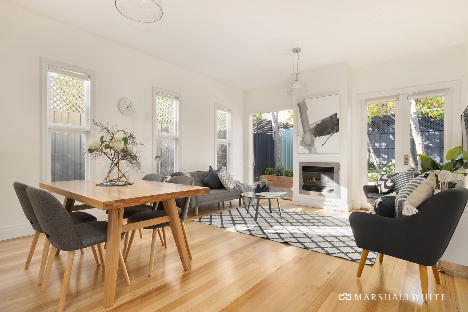 Displaying original proportions and leadlight windows, the L-shaped hall flows through to a beautiful sitting room or 4th bedroom with open fireplace, the main bedroom with built in robe and en suite, two additional bedrooms, a stylish bathroom and laundry. Hardwood floors add a more contemporary tone to the generous open plan living and dining room with a modern European kitchen and butler's pantry. Two sets of French doors open the living out to a gorgeous leafy and private northeast garden oasis and deck, ideal for outdoor dining and entertaining. Features include ducted heating and split system, and gas fireplace. Perfect for both families or downsizers without compromise, it includes 2 off street car-spaces.