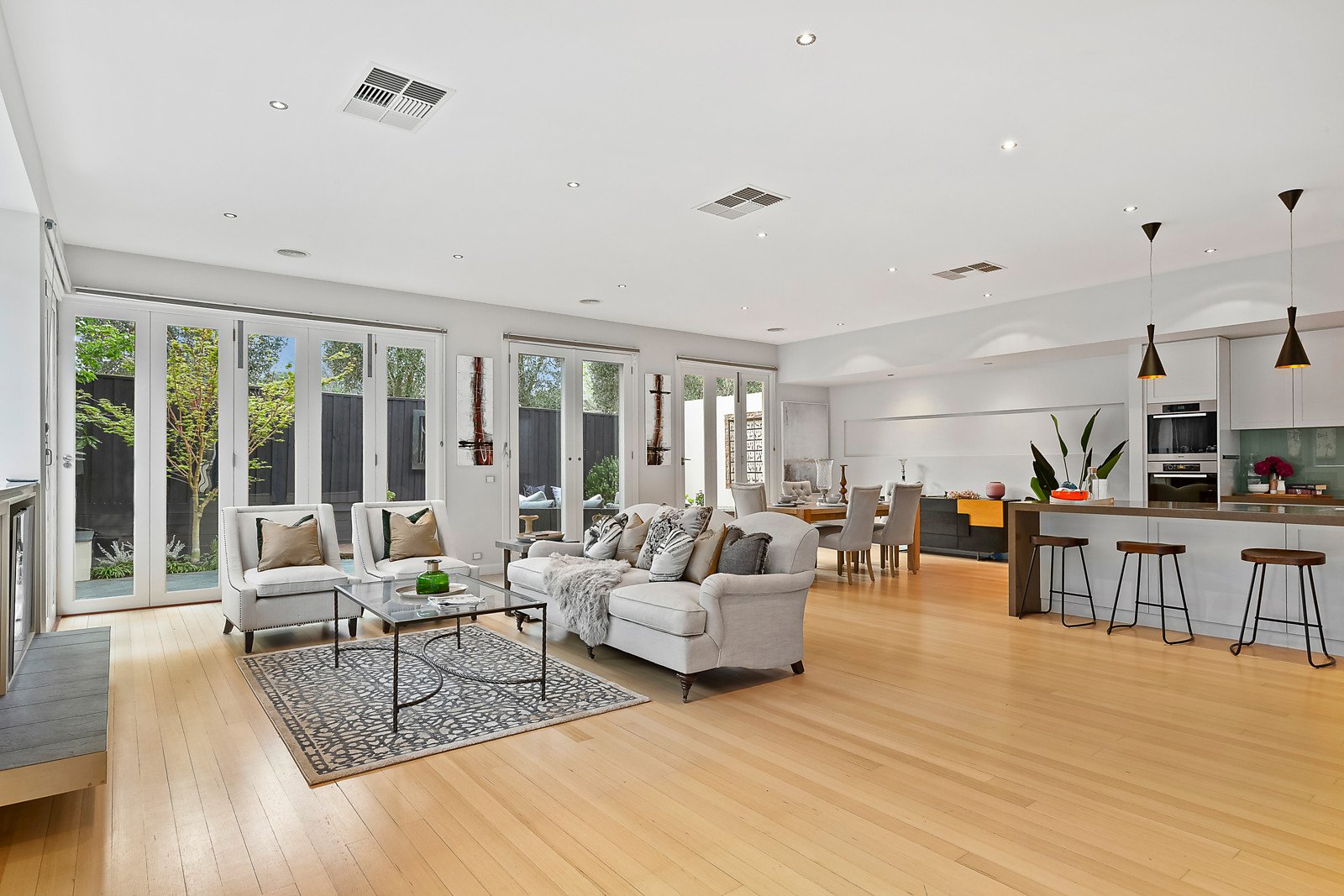 Recent refurbishments to this elegant and luxurious home have ensured its status in the surrounding streetscape and enhanced its generously proportioned accommodation which provides superb family living and entertaining spaces. Introduced by a neatly clipped classic garden the interior features a wide entrance hall flowing past a study/5th bedroom, downstairs main bedroom with WIR and ensuite, laundry and powder room. With a further three bedrooms with BIRs and student desks located upstairs alongside a generous family retreat and bathroom. Basking in northern light the living areas include a formal sitting and dining room leading to an expansive family domain and a superbly appointed Miele and stone kitchen designed for entertaining. Connected through bi-fold doors to the alfresco courtyard with two water features and garden designed by Landscape Architect John Patrick.