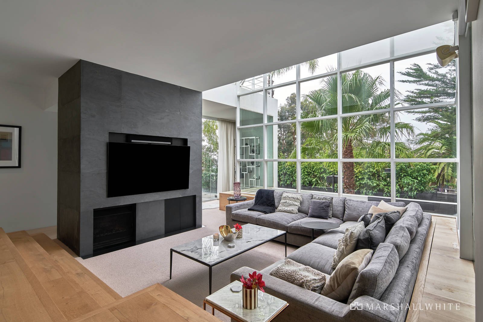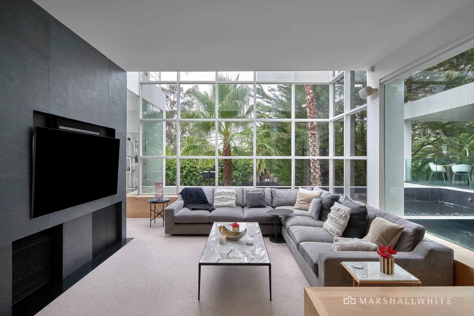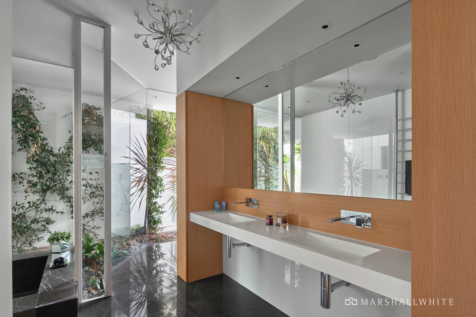 One of Melbourne's most spectacular and exclusive private homes, this magnificent Bochsler-designed residence offers exciting scope to further enhance while presenting a rare opportunity to accommodate an extraordinary family lifestyle within a truly prestigious locale. Surrounded by botanic gardens punctuated by cascading water features, dramatic light-filled spaces and soaring voids delight the senses over three breathtaking levels, whilst still retaining an intimate ambience. The living level reveals a sumptuous lounge leading to elegant formal dining with drinks bar, relaxed sunken family area, study, meals area, immaculately appointed kitchen detailing Miele appliances - inbuilt steamer, warming drawer, oven and microwave - and a butler's pantry.