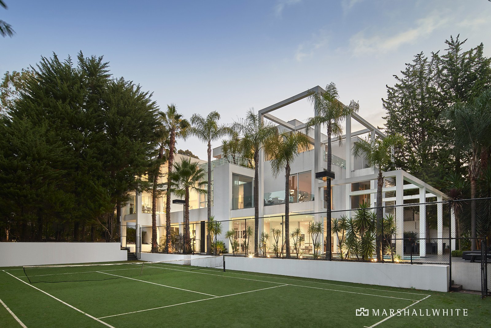 Additionally, a luxurious guest bedroom with exquisite sunken bath ensuite and walk-in robes. Stairs lead up to two stunning bedrooms offering walk-in/built-in robes and sublime ensuites, with the lavish main bedroom showcasing a luxe spa ensuite and fabulous walk-in robe. The lower level opens to an exceptional recreation domain comprising a home theatre, fitted bar, billiards area, teppanyaki bar and Ilve kitchen. Also on the basement level, a spa, solarium, home gym space, wine cellar, office, abundant storage and internally accessed garage for three cars and ample off street parking. A stunning array of balconies and alfresco entertaining spaces reveal lofty mountain vistas and outlooks to the expansive, lush gardens enveloping a superb 25m solar heated pool, wading pool and tennis court. Further appointments to this solid concrete structured home include European Oak timber floors, slab heating and evaporative cooling/heating throughout, utilities lift, natural bluestone tiles throughout, back to base home security, alarmed and monitored doors and Cbus. A bold and rarefied resort-style sanctuary offering the ultimate in privacy and luxury.