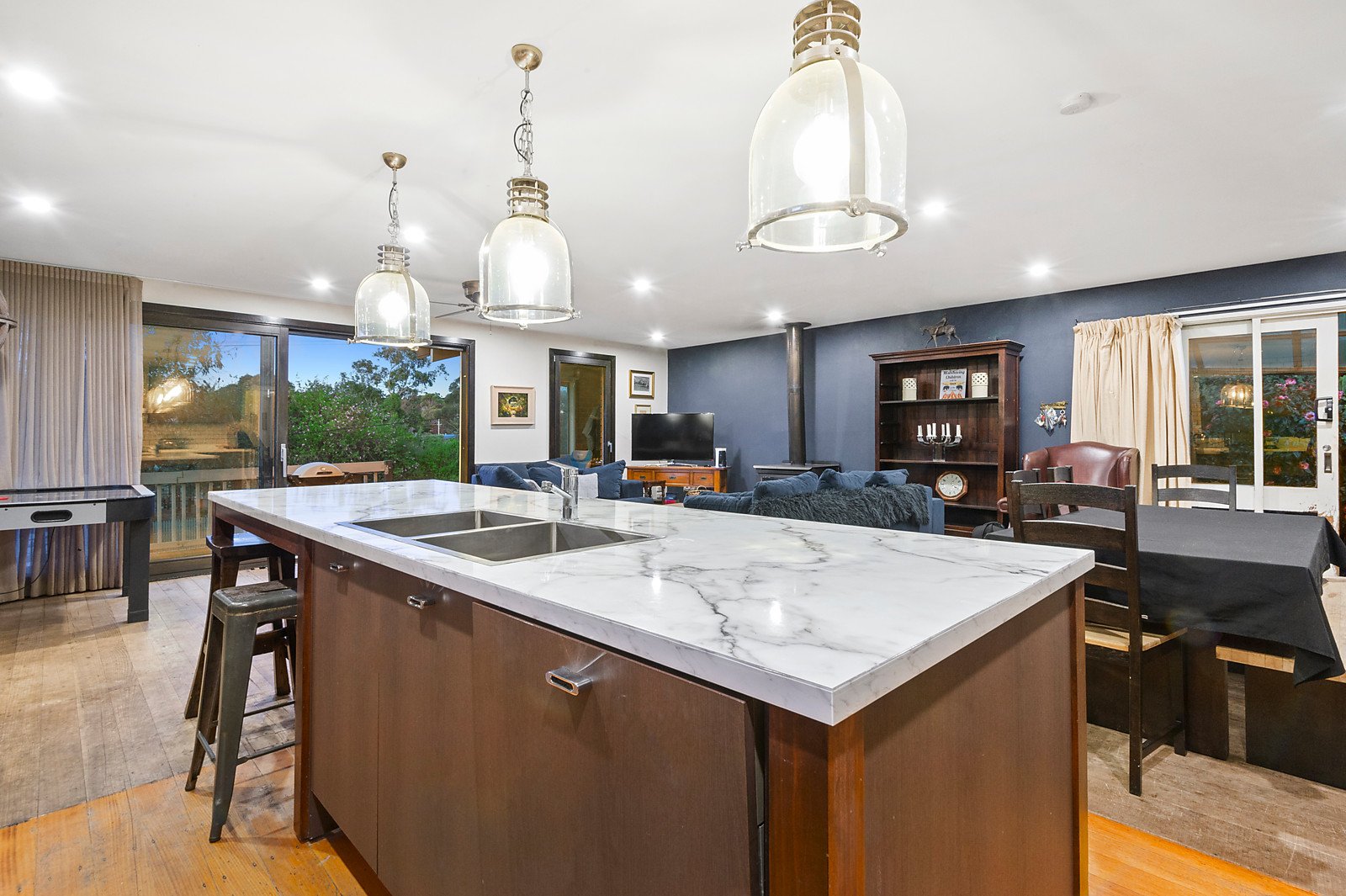 Behind a striking, rustic fence sits an opportunity to complete a project, injecting your own style and flair across the entire home. Having completed the hard yards, the home presents completed earthworks across the ground floor, with an approved planning permit for a bedroom with ensuite, and separate storage. Stepping inside the main home, a warm disposition greets you, unveiling an inviting and spacious family domain encompassing casual living space with WFH, dining, and a generous kitchen with feature pendant lighting anchored by a grand island bench, and a 900mm Westinghouse oven. An eye-catching barn door reveals the remainder of the home, inclusive of functional laundry, main bathroom with double vanity and WIS, master bedroom with WTR and ensuite, and three additional bedrooms (BIRs).