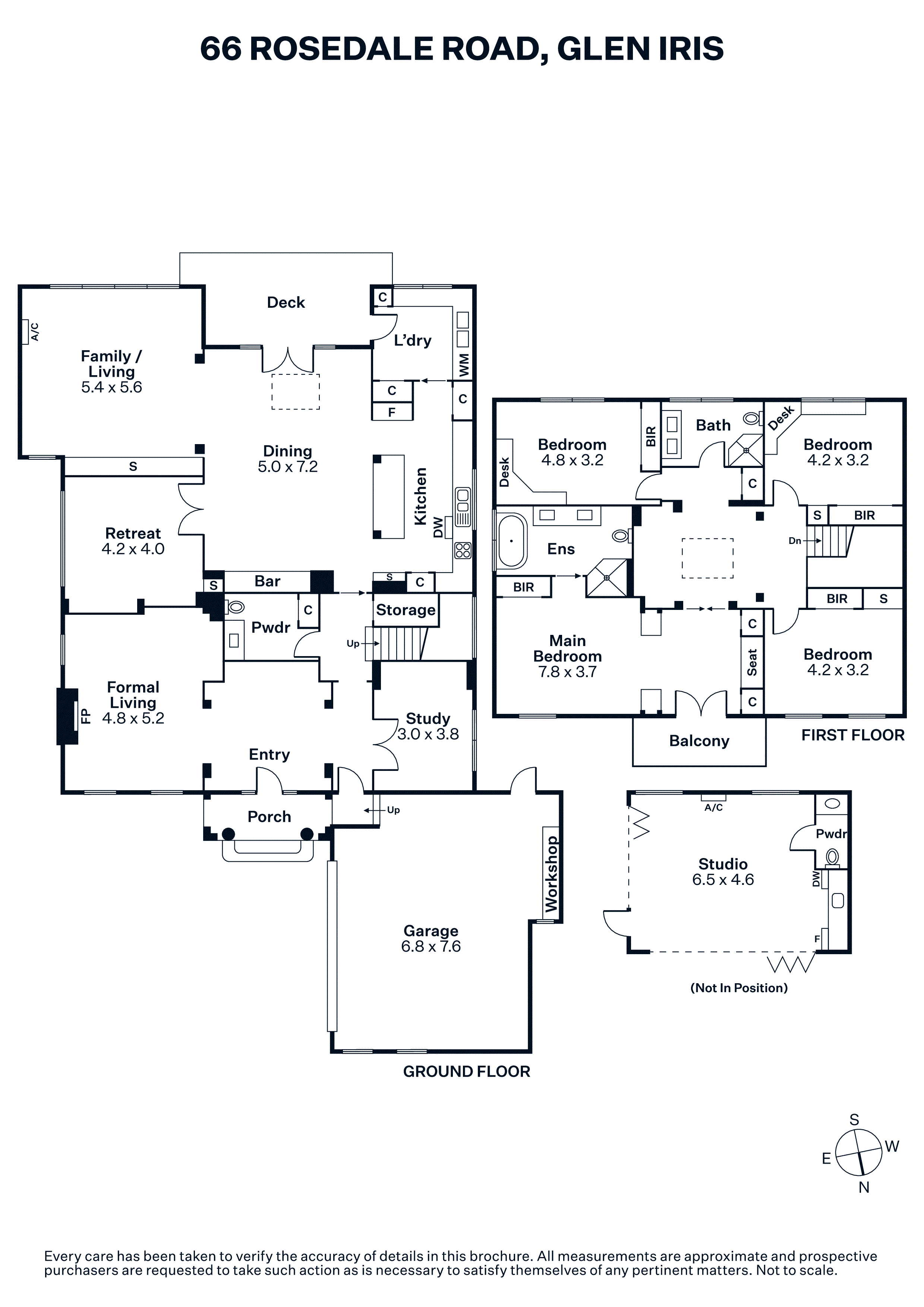A generous reception hall featuring ornate parquetry floors introduces a gracious sitting room with a marble open fireplace, a home office and spacious media room. Parquetry floors flow through the palatial living and dining areas and the superbly appointed gourmet stone kitchen with butler’s pantry/laundry. The living spaces open to a completely private leafy garden with a large bluestone entertaining terrace, 2 built in BBQs and a fabulous rumpus/party room or self-contained accommodation with kitchenette, powder-room and bi-fold doors on 2 sides opening to the garden. Impressive family accommodation upstairs comprises the lavishly proportioned main bedroom with robes, designer en suite with auto toilet and north-facing balcony, three additional robed bedrooms and a stylish bathroom with auto toilet.