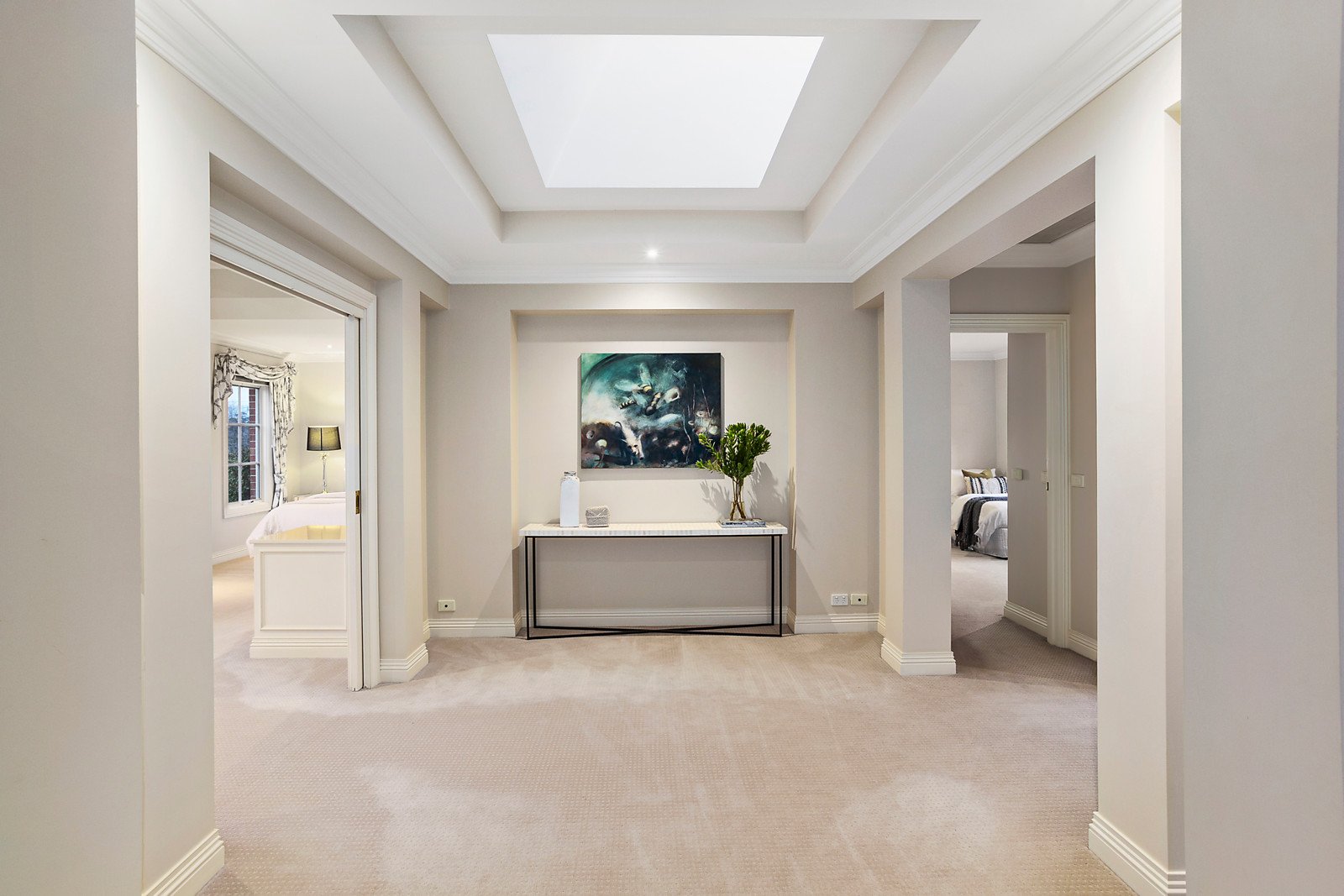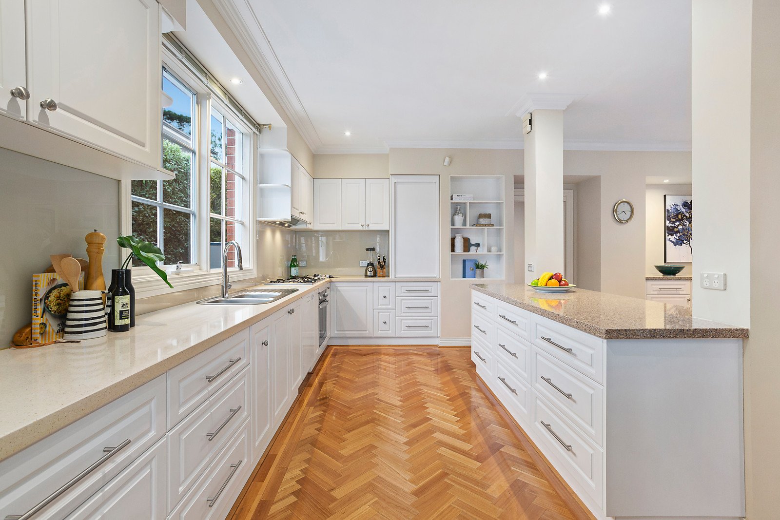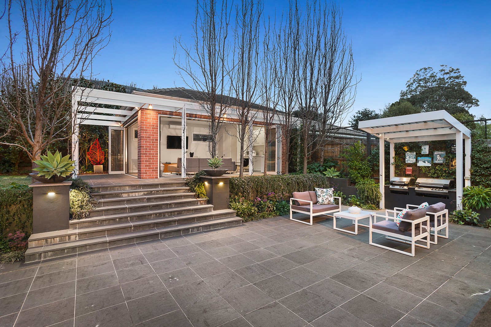 Behind a glorious hedged garden, the majestic reception hall creates an impressive initial impact that continues through to the elegant sitting room with a marble mantelpiece, generous study and refined library or music room. Parquetry floors flow through the expansive dining area served by a gourmet stone kitchen and a spacious separate living or media room. The living spaces open out to a picturesque private landscaped garden with extensive bluestone paved terraces, 2 premium BBQs and a freestanding pavilion/recreation room or self-contained accommodation appointed with bi-fold doors on 2 sides, a kitchenette and powder-room. The stunning main bedroom with new designer en suite and built in robes enjoys wonderful leafy outlooks. Also upstairs, there are three additional bedrooms with built in robes and a stylish new bathroom.