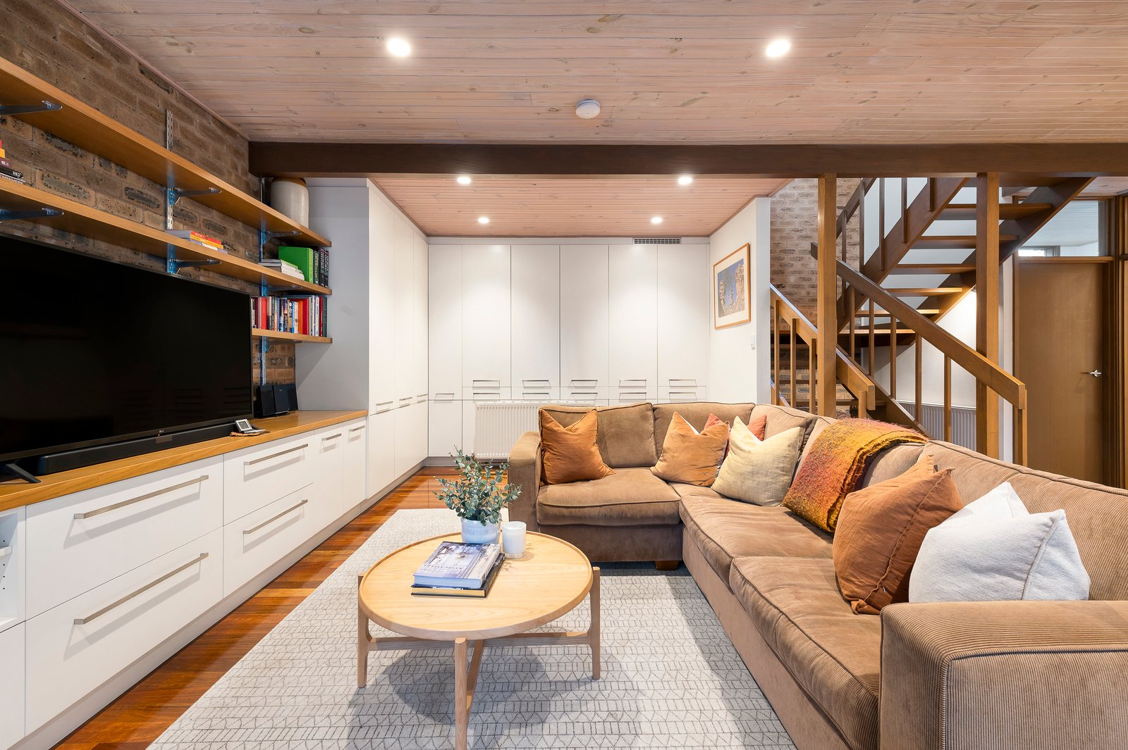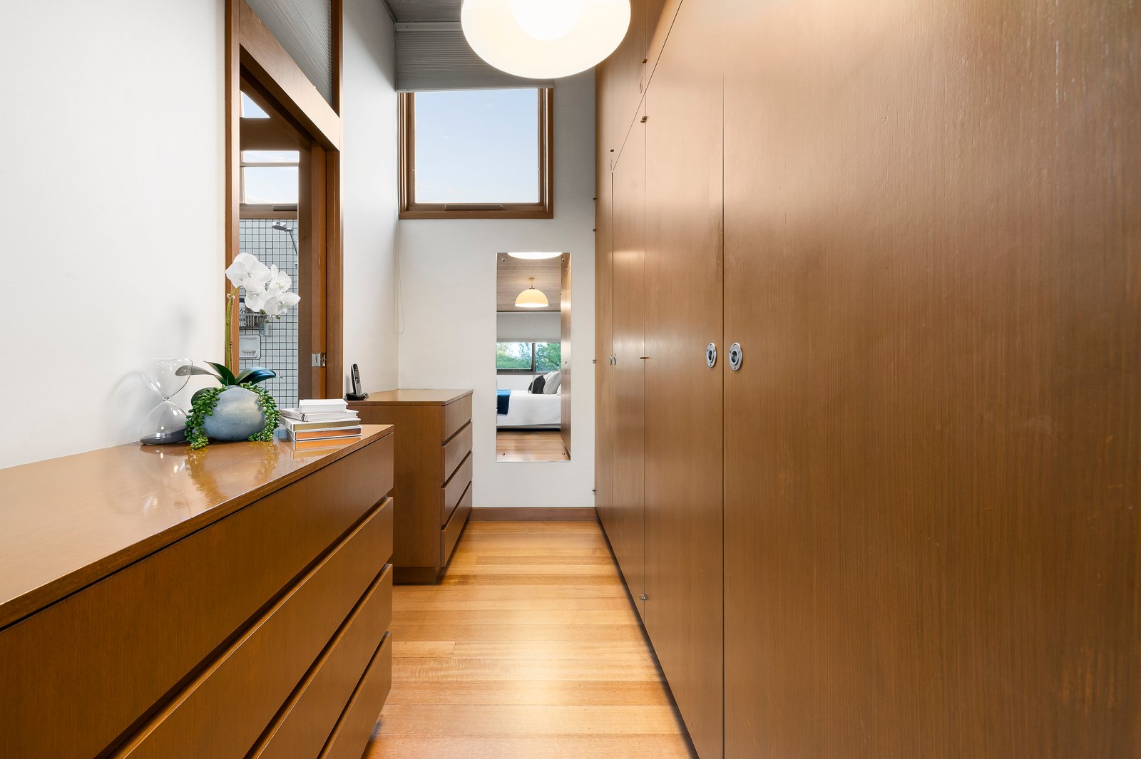 Nestled within utterly captivating, landscaped surrounds with all living spaces oriented to enjoy both northern light and garden outlooks. The hallmarks of seventies architecture including exposed brick, limed pine ceilings and timber floors are showcased through the entrance hall, generous sitting room beneath a raked ceiling and warmed by an open fire and the inviting dining room. The expansive family room is served by a sleek modern gourmet kitchen appointed with white stone benches, breakfast bar and Miele appliances including a warming drawer. The living areas all open to a broad pergola covered verandah and the glorious north and west facing leafy gardens. The raked ceilings continue upstairs through the main bedroom with built in robes and dual access bathroom/en suite, three additional bedrooms with robes and desks, a fitted study and a shower-room.