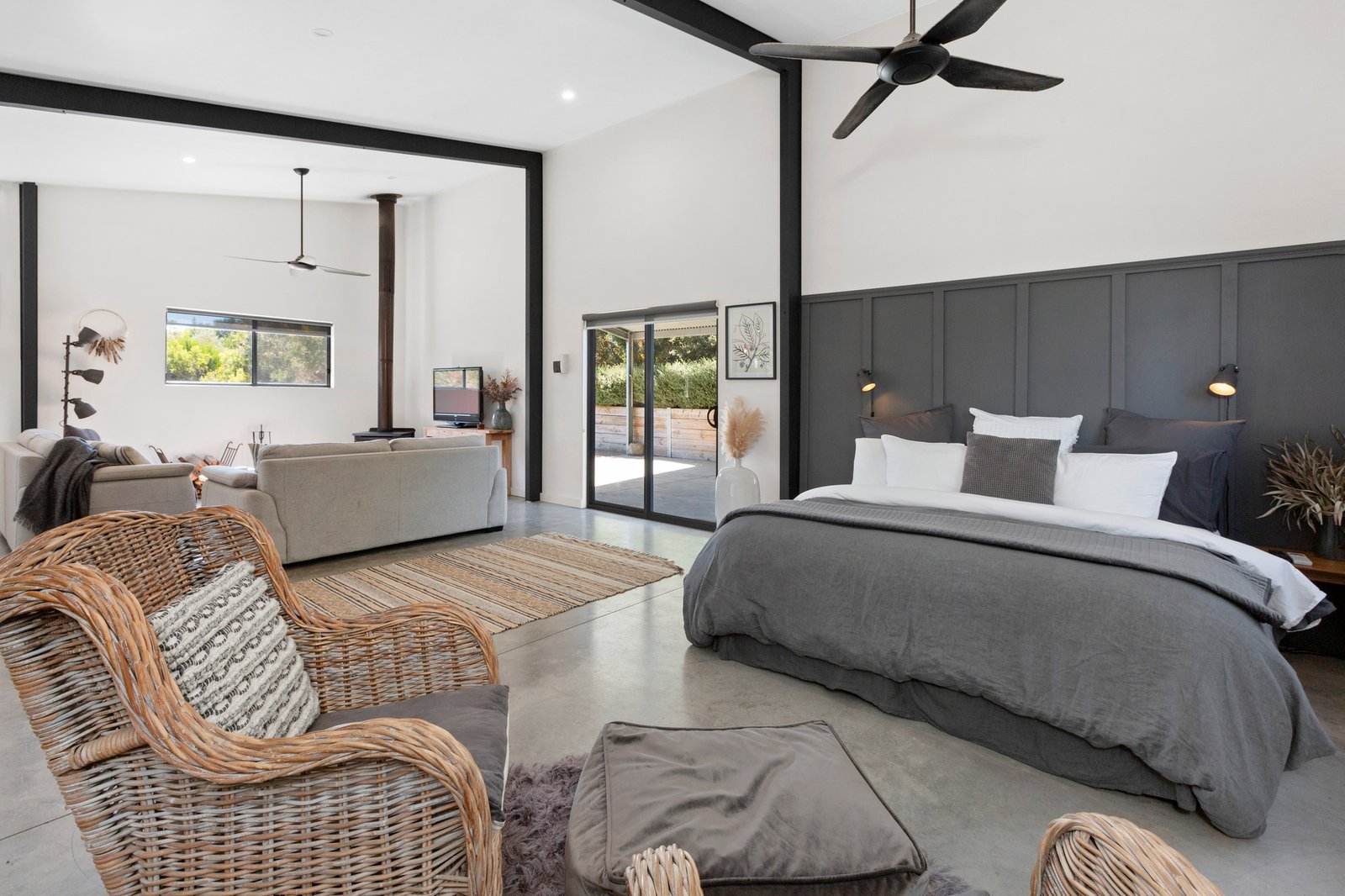 Generous proportions define the main bedroom, well-appointed with a walk-in robe and modern ensuite; three additional robed bedrooms and a bathroom rest in a separate wing, whilst a self-contained studio apartment is tucked away from the main residence. An ideal opportunity for multi-generational living or continuing its successful operation in the short-stay rental market, this private accommodation boasts broad appeal with its contemporary interior, quality amenities, heating/cooling options, and exclusive street access.