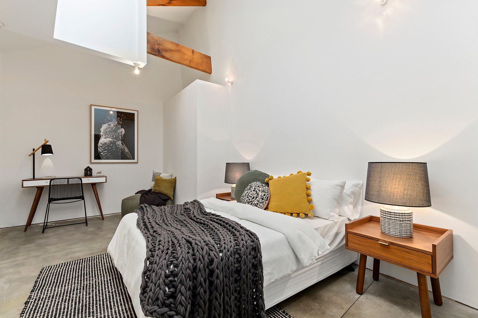 Set back from the street behind a high private fence, the distinctive interior spaces showcase state of the art design, luxury and quality throughout, highlighted by original warehouse features including stained wood beams, polished concrete floors and stunning cathedral ceilings. The sensational living and dining areas offer flexible spaces able to perfectly cater to every modern family requirement, while an open plan kitchen boasts timber benches, ample storage and quality stainless steel appliances. The superb main bedroom is appointed with built in robes and walk in robe as well as a skylit ensuite, complemented by a second bedroom with robes plus family bathroom and laundry.