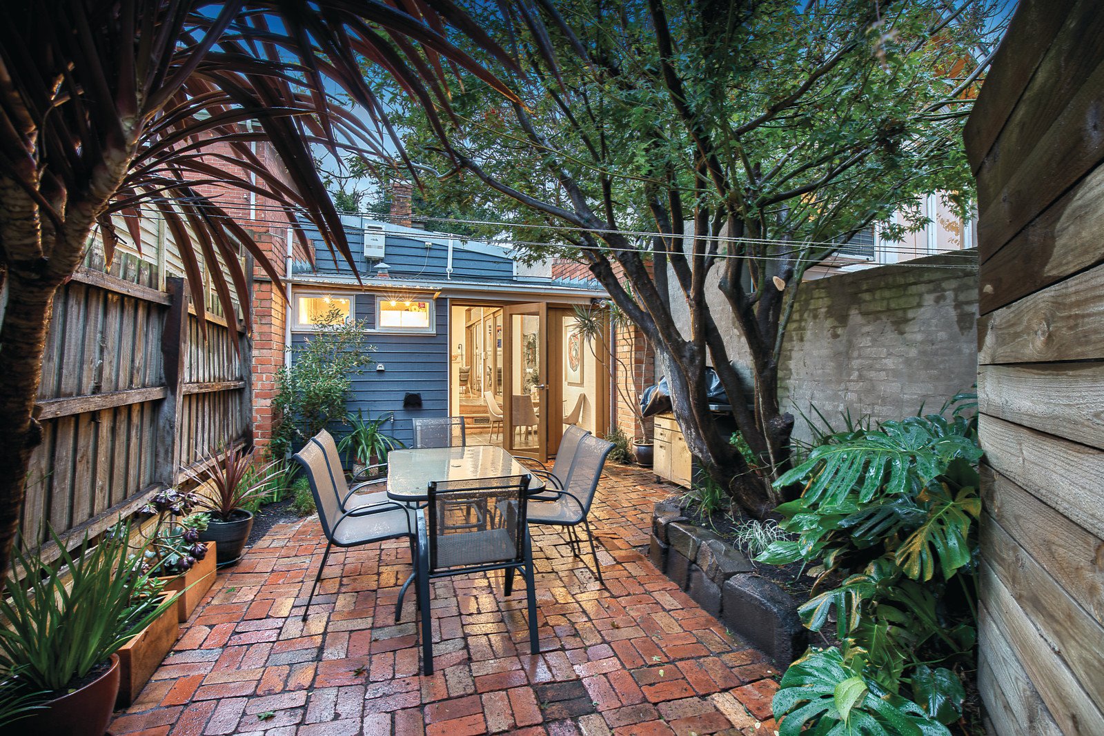 Behind the block-fronted façade, Baltic pine floors and high ceilings define the arched hallway, beautiful main bedroom with open fireplace and built in robe, second double bedroom with built in robe and a stylish bathroom and Euro-laundry. Opening completely to a sunny side deck, the inviting living room is accompanied by a bright capable kitchen and light-filled dining area. Bi-fold doors open out to a private leafy north-facing courtyard with pedestrian access on one side and potential vehicle access on the other.