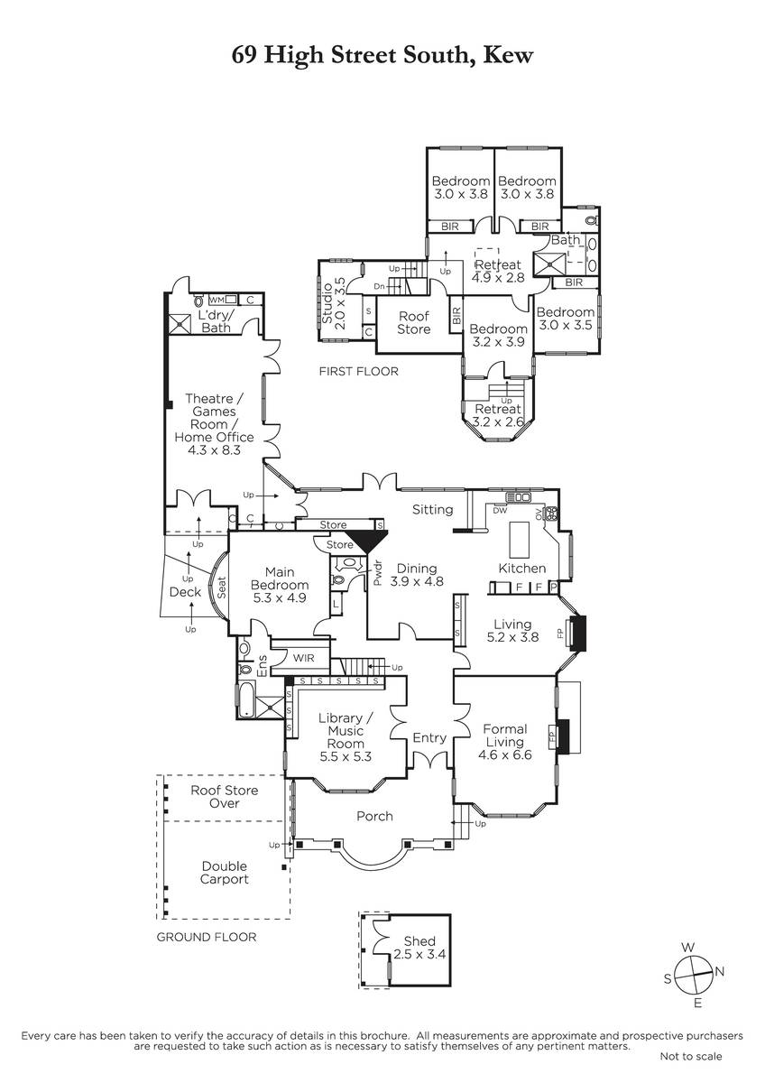 Introduced by a generous porch, the home features coloured and diamond leadlight glass and bay windows with a wide entrance hall leading to a formal sitting room, library/music room with a beautiful timber ceiling, downstairs main bedroom with WIR and ensuite, powder room and an informal living room. The additional family area includes dining/ living, stylish kitchen equipped with premium Asko and Smeg appliances and a home theatre or games room with adjacent laundry/bathroom; overlooking a gas heated pool in the outdoor dining and entertaining area - perfect for family relaxation and enjoyment. The upstairs features a family bathroom and retreat, a further four bedrooms with built-in robes, one with a study area/retreat and a studio. Other features include alarm, extensive storage including roof, ducted heating, air conditioner (kitchen), R/c air conditioner (theatre), rainwater tank, garden shed or cubby house and auto gates, double carport and space for off-street parking.