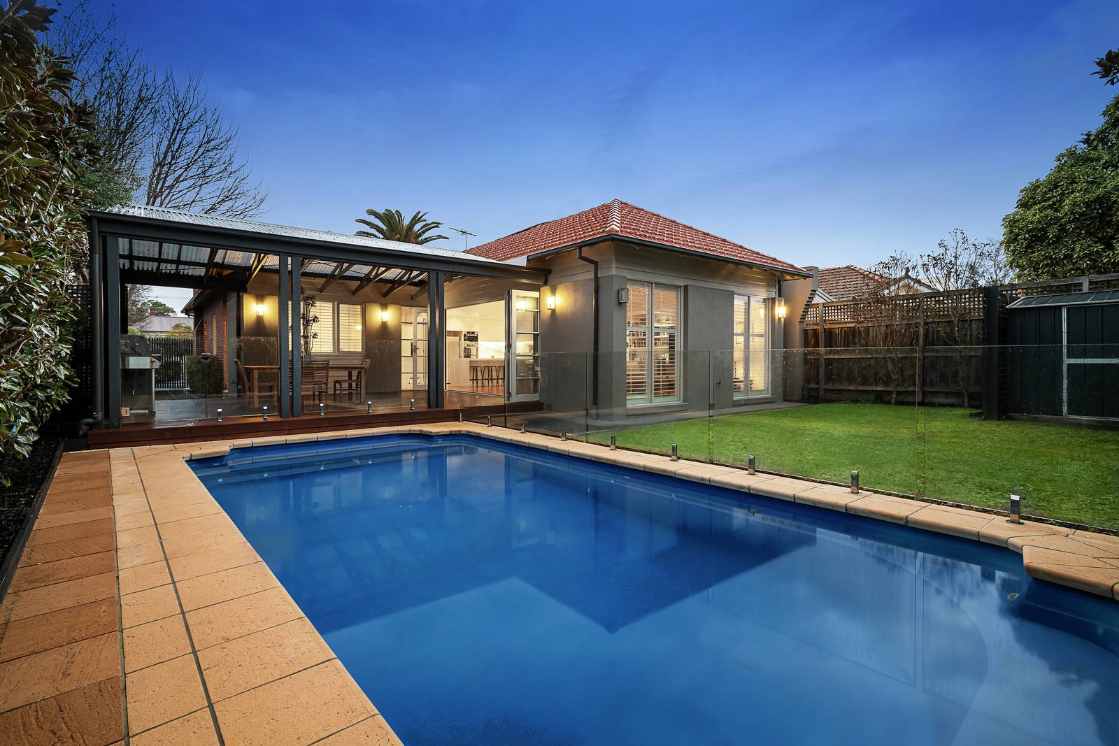 State-of-the-art style has transformed this fine home into a contemporary oasis, metres from Hampton St. Streamlined and single-level, the original architectural beauty is paired with today's sought-after features, including a large north-facing family room, gourmet Miele kitchen, a pool and all-season outdoor living. Perfect for family living, there's three bedrooms and a study, zoned lounge with original elegance and a rebuilt open fireplace, Rogerseller bathrooms, and attic storage. Every room is precision-designed, from the main bedroom with wardrobes, a walk-in wardrobe and a luxurious ensuite to the family room with custom-crafted storage and a wall of bifold doors. This is ready to move in and love every room, including the spacious kitchen's metres of Caesarstone bench space, warming drawer, two ovens, and above-sink slot window. The attention to detail delivers so much, including a large undercover deck next to the pool, efficient ducted heating and air conditioning, desks and storage in the street-front study, felt pin boards, home work station, and ducted vacuum. Premium Hampton location with many schools within easy walking distance, cafes and shops at the top of the street, and the beach beckons just a few blocks away.