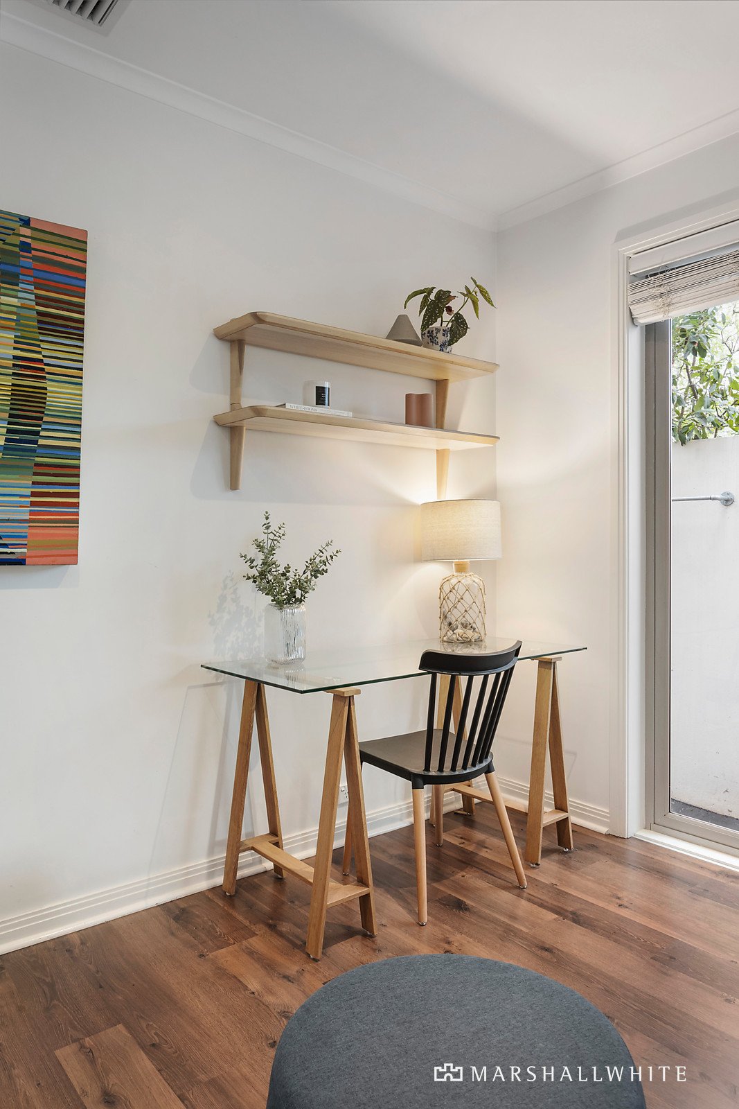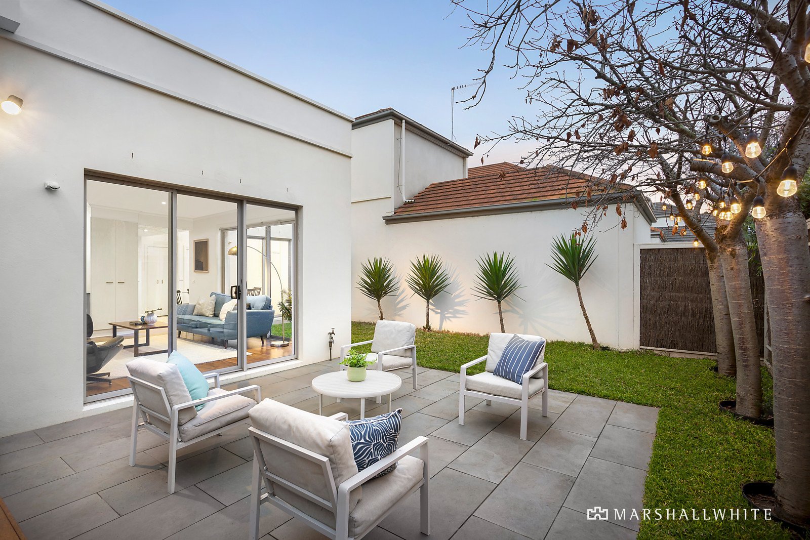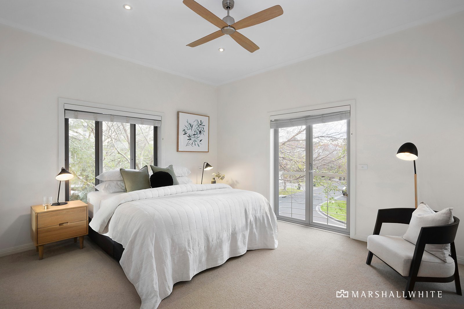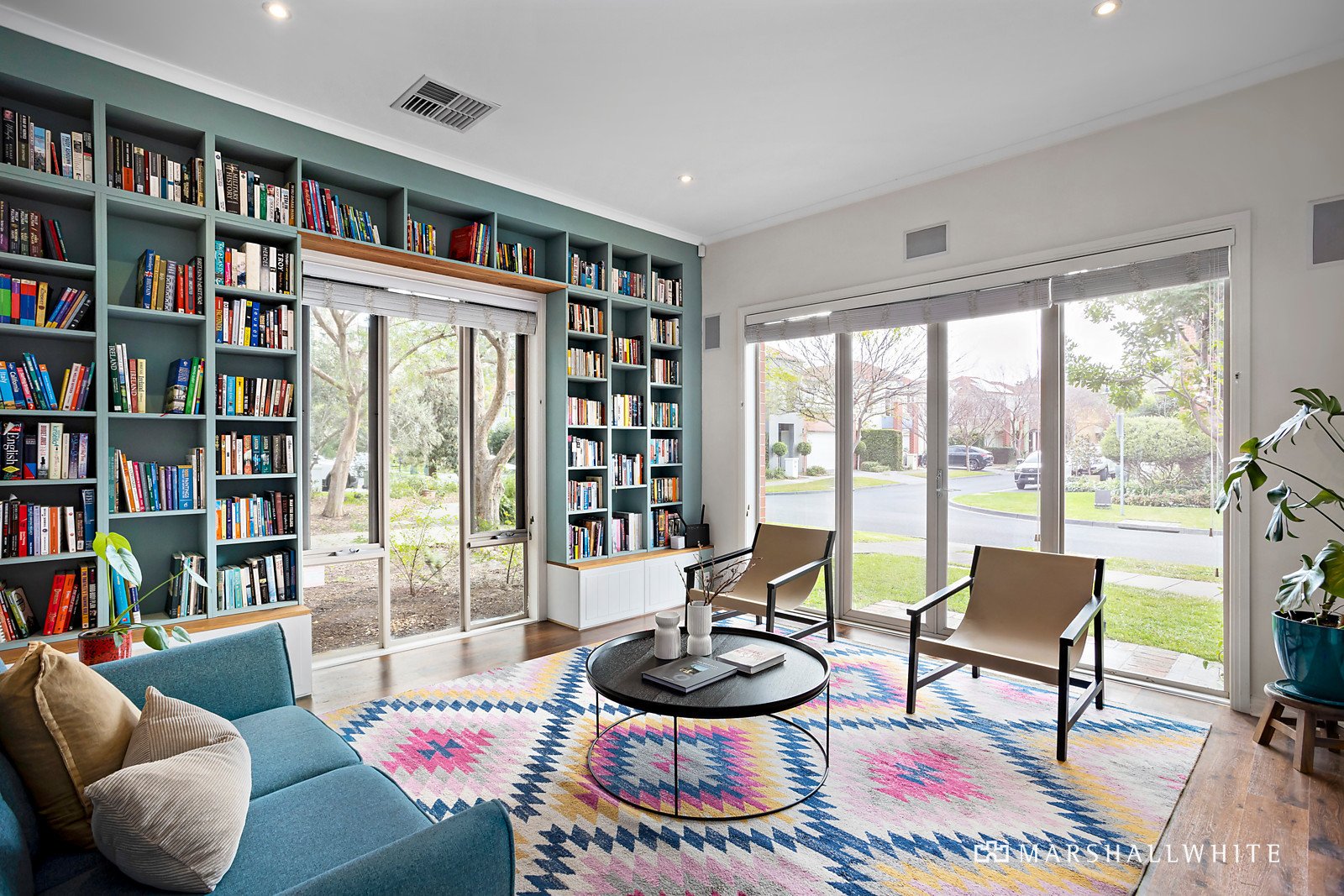 Deceptive from the street, the interior scale opens to a flowing and flexible floorplan, guaranteeing a wealth of space to relax and entertain with absolute ease in grand indoor-outdoor proportions. High ceilings and rich timber flooring flow throughout the downstairs domain, delivering a study, an expansive formal lounge and a dining room with side courtyard access. The open-plan casual living area and Miele-appointed stone-bench kitchen with dual ovens, seamlessly connect to the sunny rear garden through sliding doors, creating a private space for outdoor dining and entertaining. Additionally, the side gates provide direct access to the park via Monterey Walk extending the open spaces and offering the perfect opportunity for dog walks or allowing children to run and play freely.