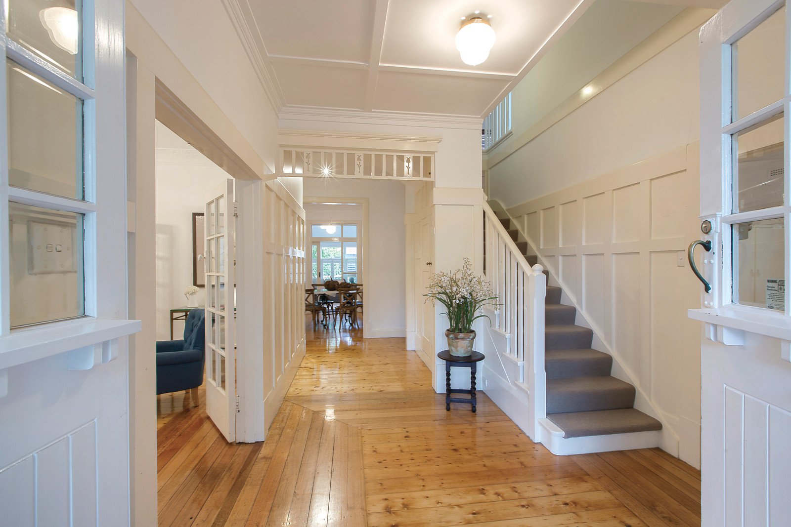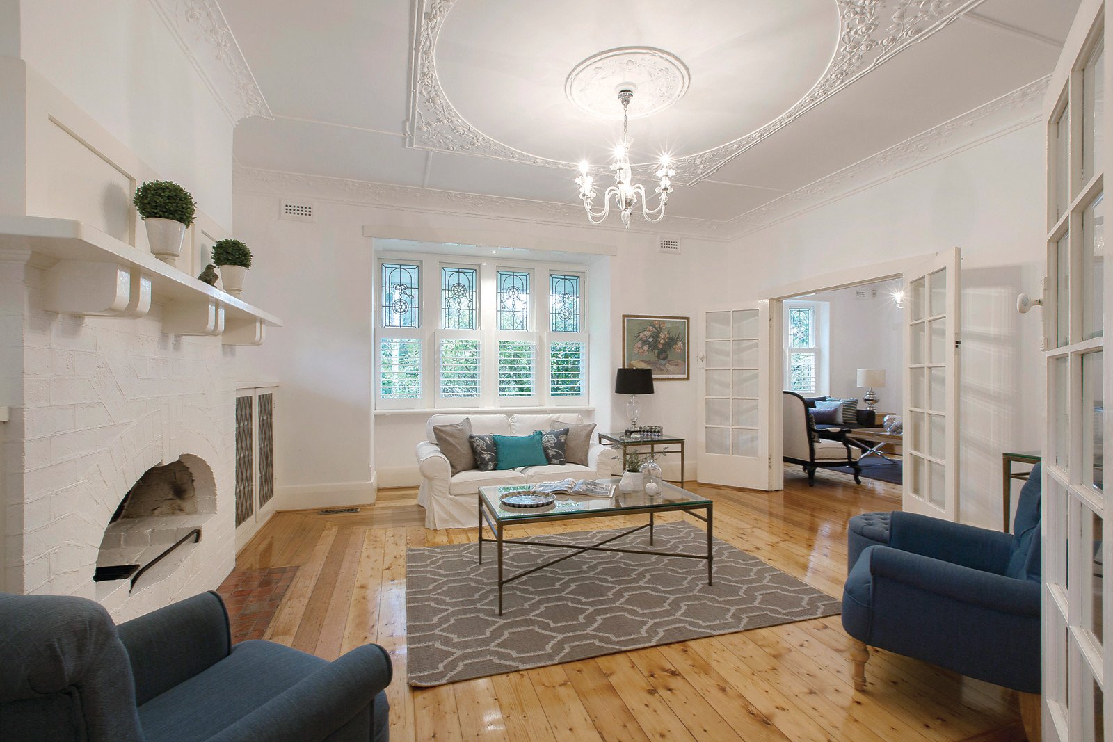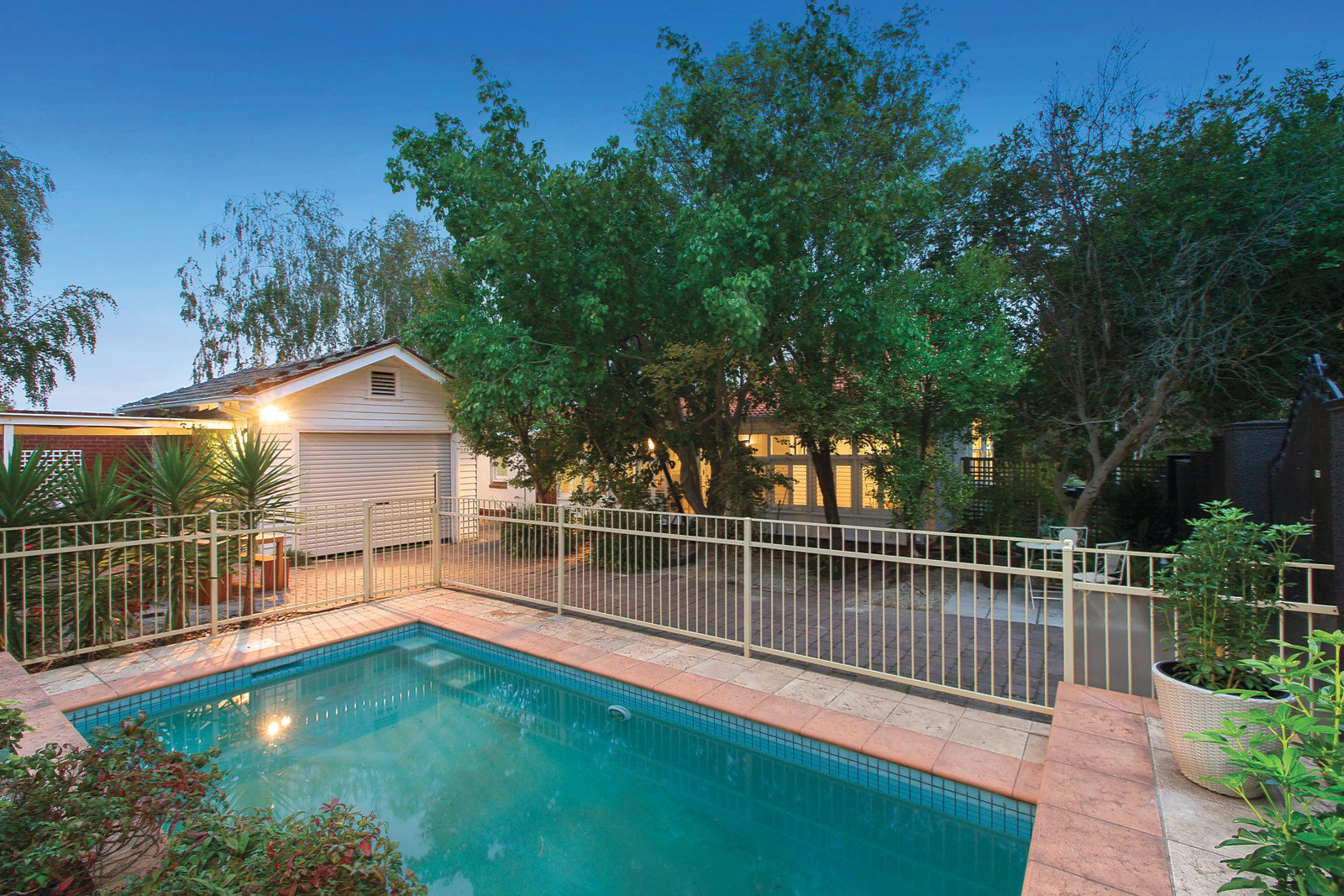 The interior features a crisp white decor, period attributes including decorative ceilings and coloured leadlight glass and generous accommodation comprising shiny polished unique timber floors, two downstairs bedrooms, pristine family bathroom, powder room and laundry; complemented by a formal sitting room and adjacent informal living room, study, dining room and sunroom overlooking the garden and solar heated pool plus a stylish CaesarStone kitchen equipped with Euro appliances whilst there are three further upstairs bedrooms with a second family bathroom. Other features include ducted heating, OFPs, split-system air conditioners (sunroom & upstairs bedrooms), ample storage, garage plus carport with entry from Goodall Street. Land size: 749sqm (approx.)