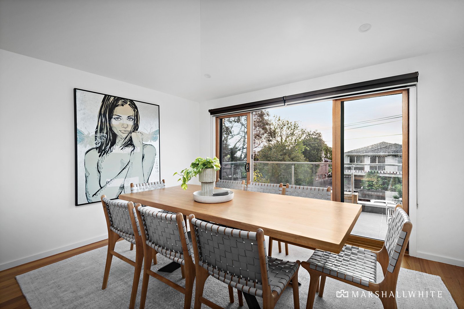 Perfect for experiencing glorious sunsets and wonderful Bayside vistas and water views, the upper-level open-plan area has a stylish stone/Miele kitchen and living/dining space that flows to the entertaining balcony accessed via glass sliding doors (fitted with insect screens).