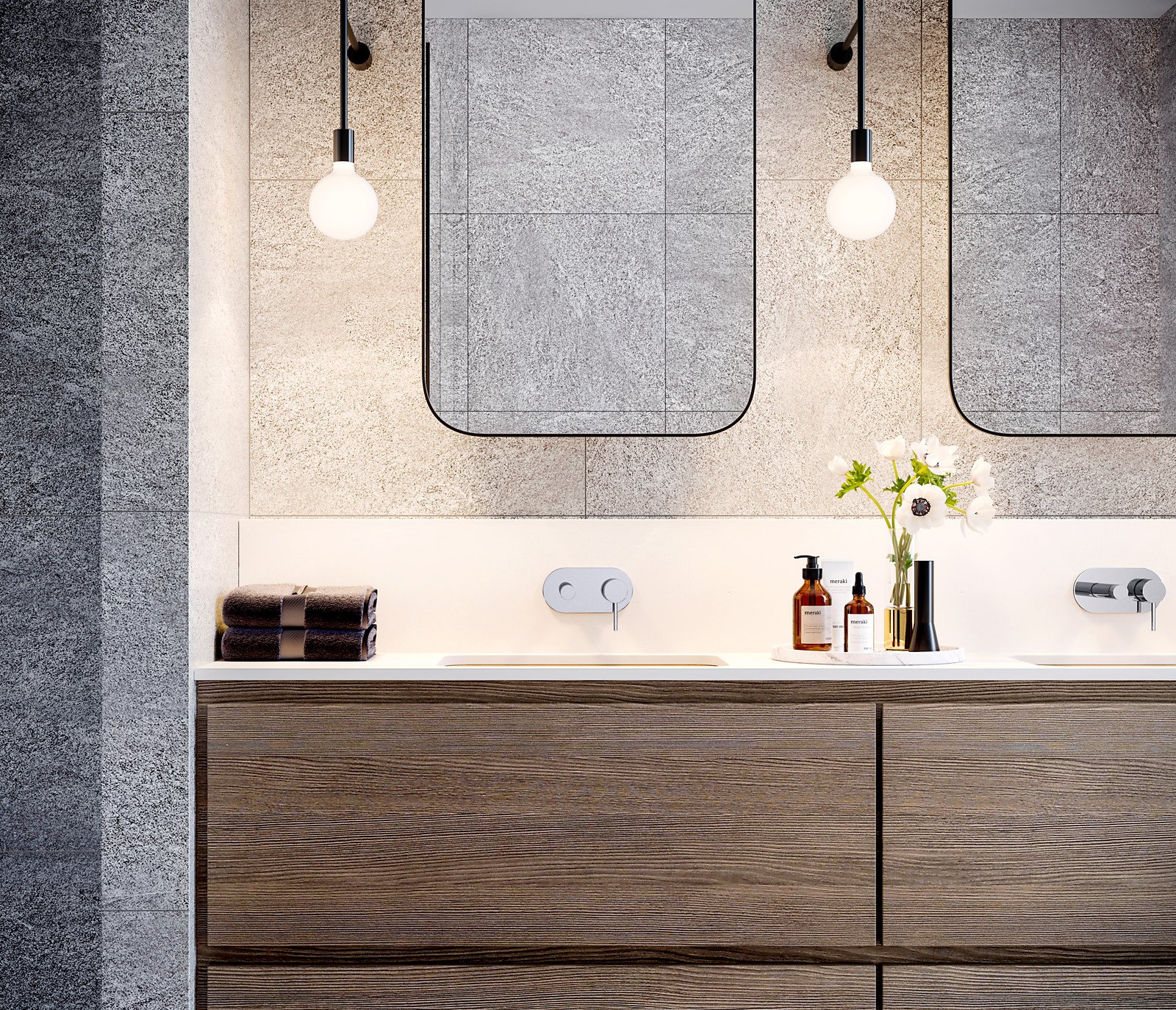 The homes are made up of soft textures including wood, displayed in the homes' joinery and floorboards that combine with Statuario stone, included to establish an organic aesthetic. The main living area is open and elegant in its approach. An open plan setting works at harnessing the light while walls contrast with dark, American oak floorboards to elevate the homes' opulence - remaining sophisticatedly minimal. Kitchens comprise of high quality European fixtures and appliances, while residents will discover 100% wool carpeting as they move into the bedrooms, creating elegant and comforting havens to unwind in.