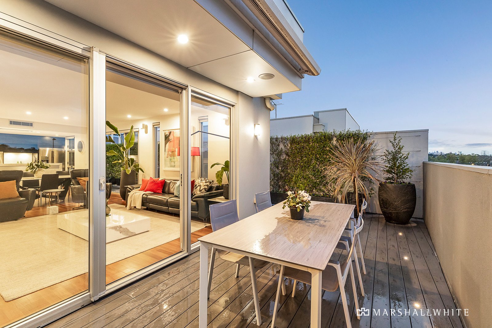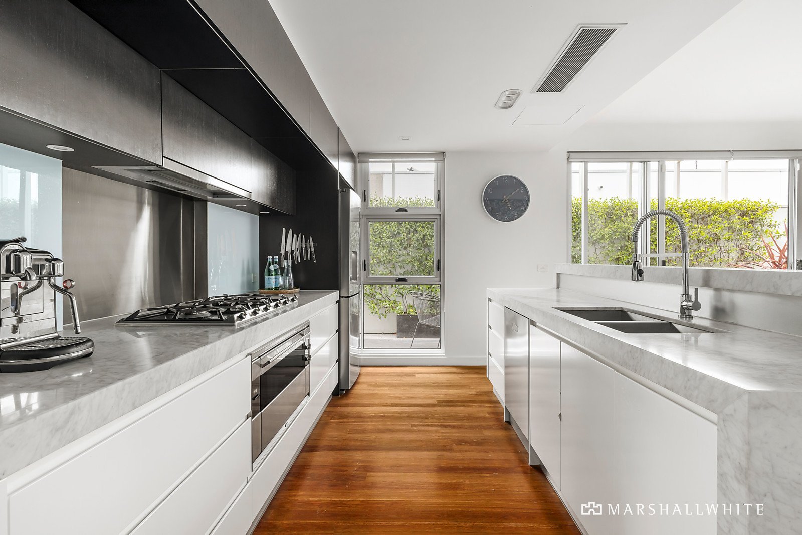 Private and secure, this exceptional dual level townhouse is positioned in a quiet cul-de-sac, delivering a cutting-edge design, high-end appointments and city glimpses from a north facing entertainer's balcony. An impressive combination of contemporary finishes, space and privacy accompany each immaculate level, the entry level revealing a stylish internal courtyard surrounded by three bedrooms of pleasing proportions, including an enviable main with ensuite. There is a family bathroom with bathtub on this level, plus powder rooms on each level.