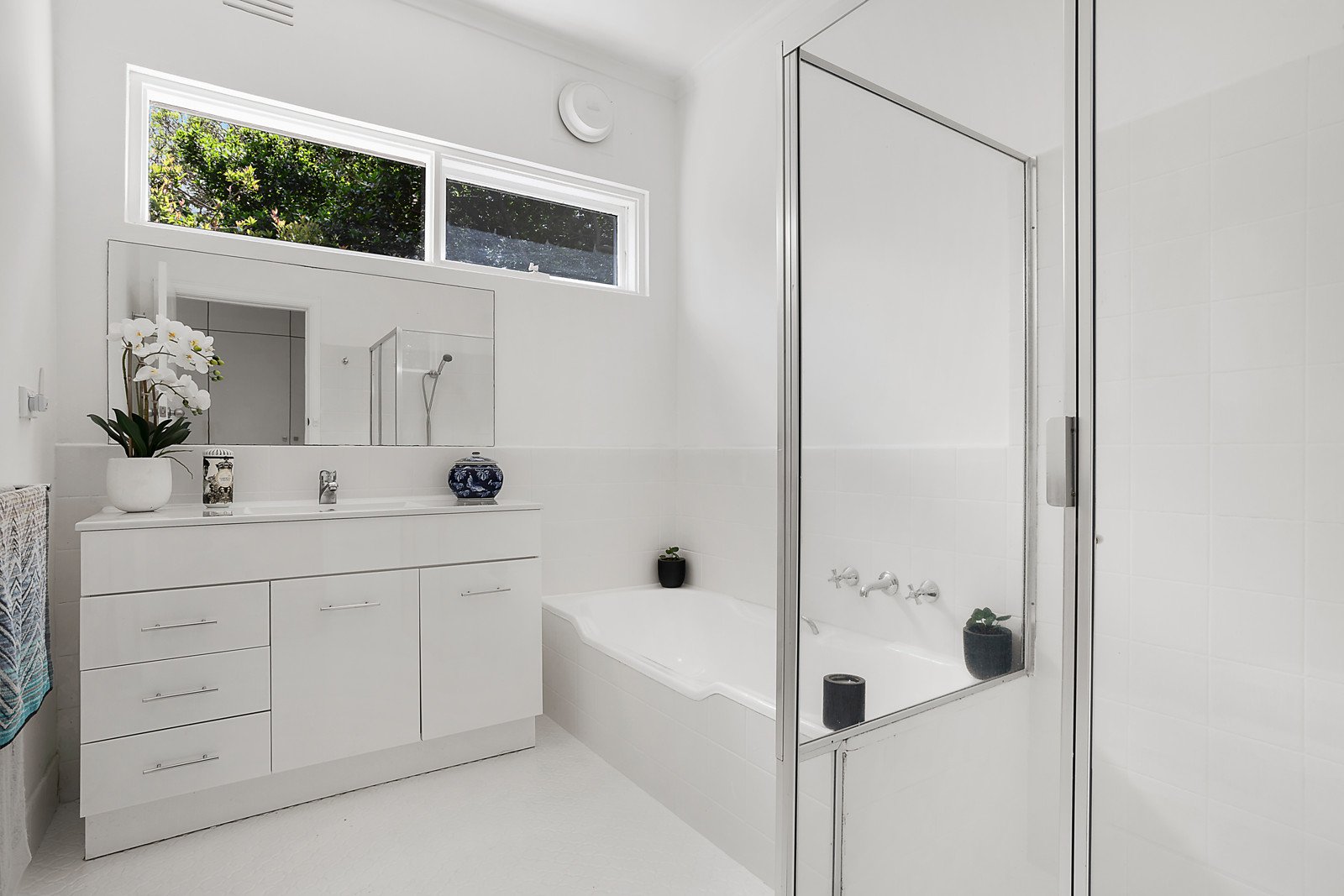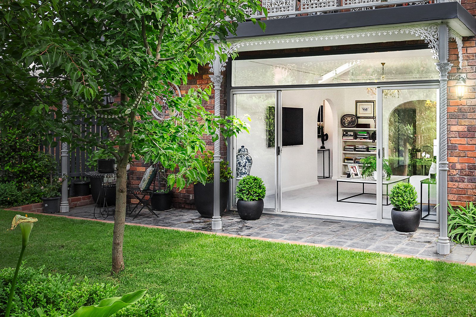 Bathed in year round northern light, the formal dining room is adjacent to a generous living room opening through full width glass sliders to a private north-facing garden, a green oasis for outdoor entertaining and relaxing. The well appointed kitchen and casual dining area open to a paved side garden. The main bedroom with bright en suite and built in robe is accompanied by two additional bedrooms with robes and a pristine bathroom with separate toilet.