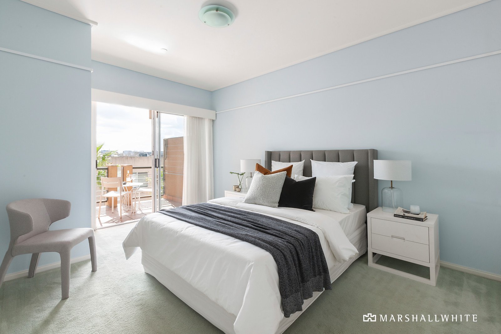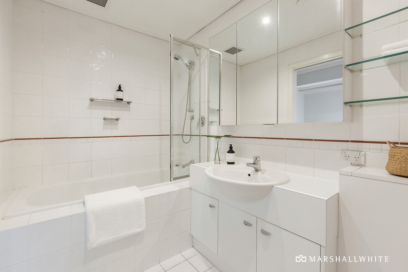 Glass sliding doors open onto a balcony from which the park and CBD panorama is sure to captivate. Meanwhile, the master bedroom is a private indulgence enhanced by a bright white ensuite, walk-through robes and a sun-drawing