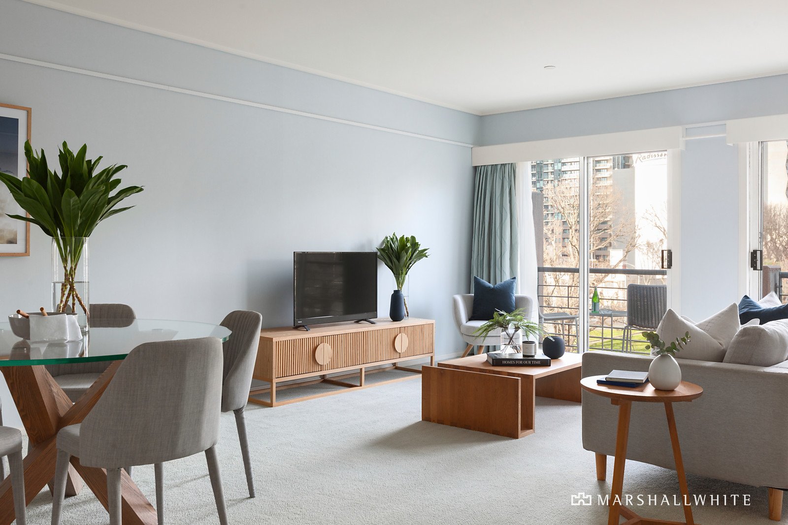 This outstanding two bedroom apartment offers so many of the fundamentals that differentiate it from other inner-urban apartments. Securely set on the third floor with a highly-prized parking space, the home has both front and rear outdoor balconies - one north facing, both overlooking gardens, both with the views of the towers of the city as a spectacular backdrop.