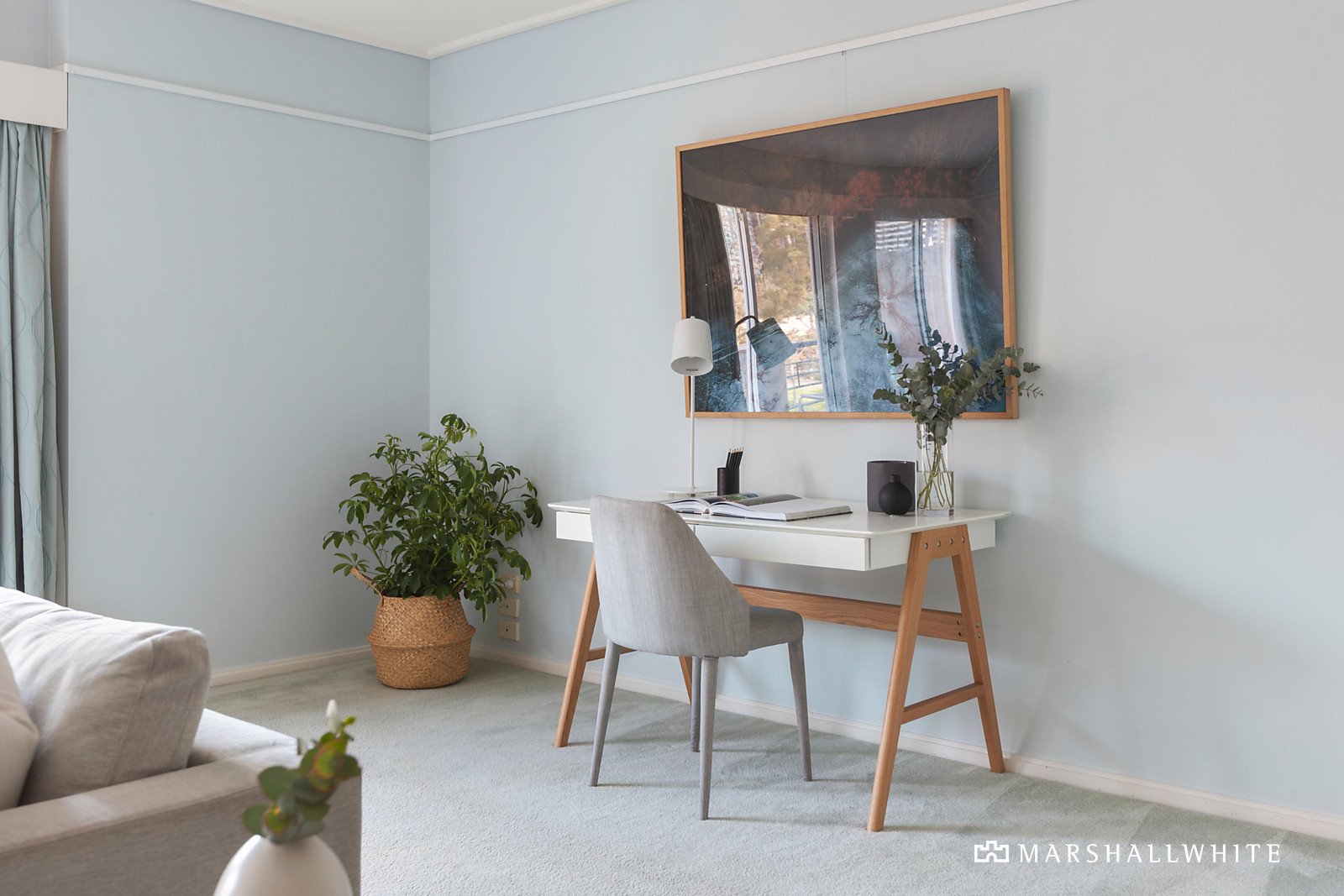 A well-designed Blanco kitchen adjoins a large open-plan dining / living area with plenty of room for an open study nook.