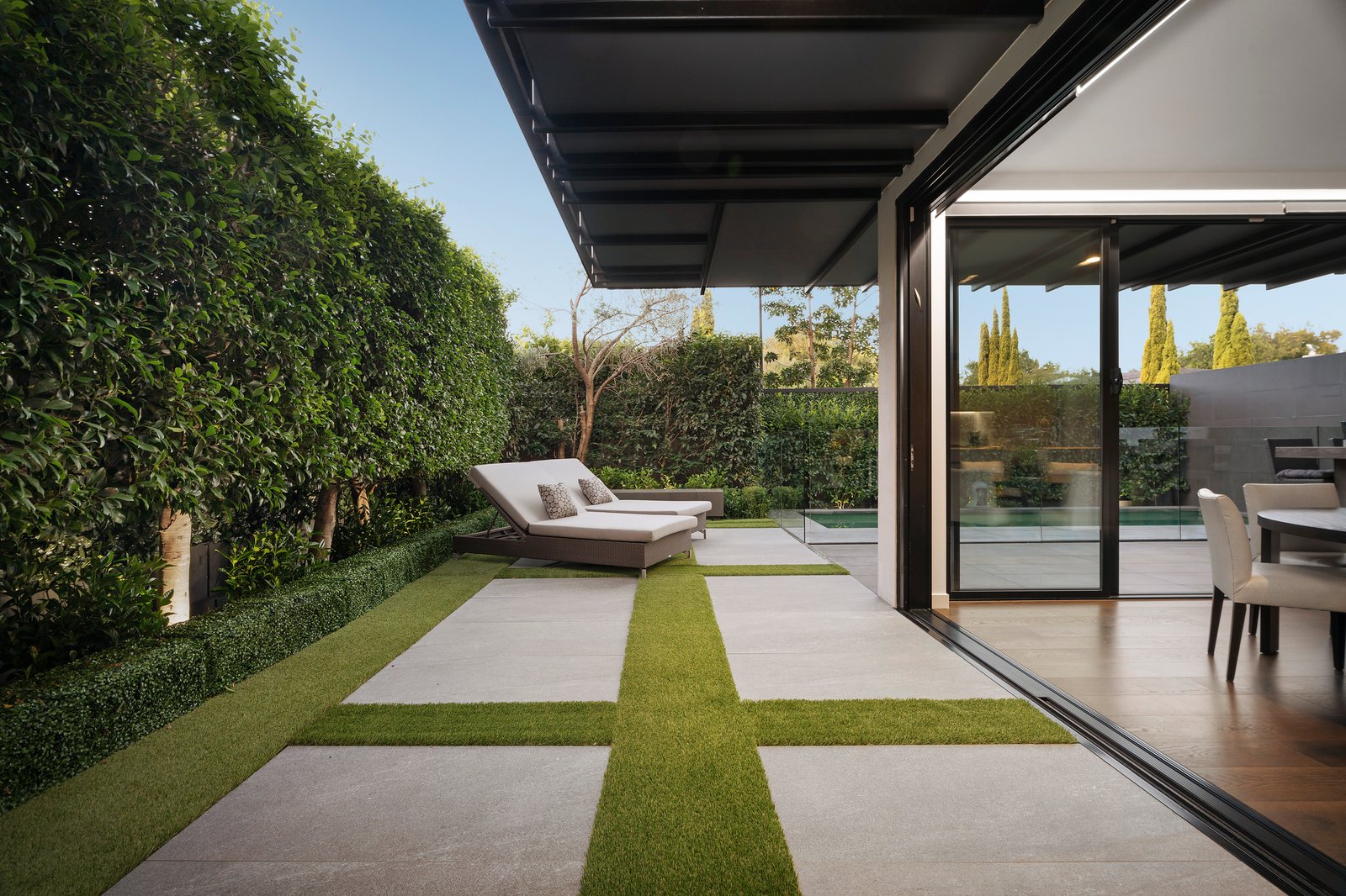 Spacious and light-filled, the open-plan area is oriented towards the sun-drenched newly paved and landscaped north-facing alfresco area, and walls of glass slide effortlessly open to allow for seamless indoor/outdoor living. The honed marble kitchen has been updated with double Gaggenau ovens, Miele cooktop, and sleek new cabinetry, concealing the integrated Miele fridge-freezer and dishwasher. Refined and elegant, the main bedroom suite opens out to a verdant garden terrace and has a full-size TV concealed into the ceiling, wall of fully-fitted leather clad robes, and a floor-to-ceiling tiled luxe ensuite with walk-in double shower and twin vanity. The elegantly fitted home office could also function as a third bedroom, while the second bedroom has built-in robes and floor-to-ceiling sliding doors to the outdoors. Bordered at the rear by a park-like private estate that adds big-sky spaciousness, the alfresco zone includes an undercover dining/entertainment area with mains gas connection, outdoor speakers, and a stunning in-ground fully automated self-cleaning and water leveling swimming pool. Manicured irrigated mature gardens create a luxury resort-like feel in maximum privacy. Positioned directly underneath the residence, there is a three-car park allocation (fitted for EV charging) in the enormous secure basement with lift access, plus a large storage enclosure (or an additional car park) with extensive built-in storage that also houses the pool equipment.