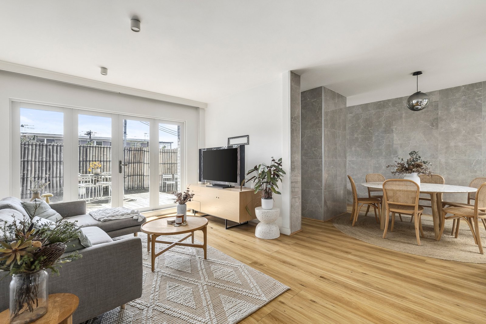 Totally ‘on trend’ with stone benches and a suite of Bosch appliances that includes induction cooking, the kitchen caters stylishly to gourmet cooking, while offering seamless connection to vast lounge / dining where the indoor-outdoor flow is sure to delight. Connected also to a second, private and secluded internal deck, the home creates a lofty sense of light-filled proportion, offering also built-in robes in each bedroom, semi-ensuite access from the primary bedroom to a showpiece bathroom / laundry with separate wc, as well as split system heating / air conditioning and carport parking right beside the secure intercom entry.